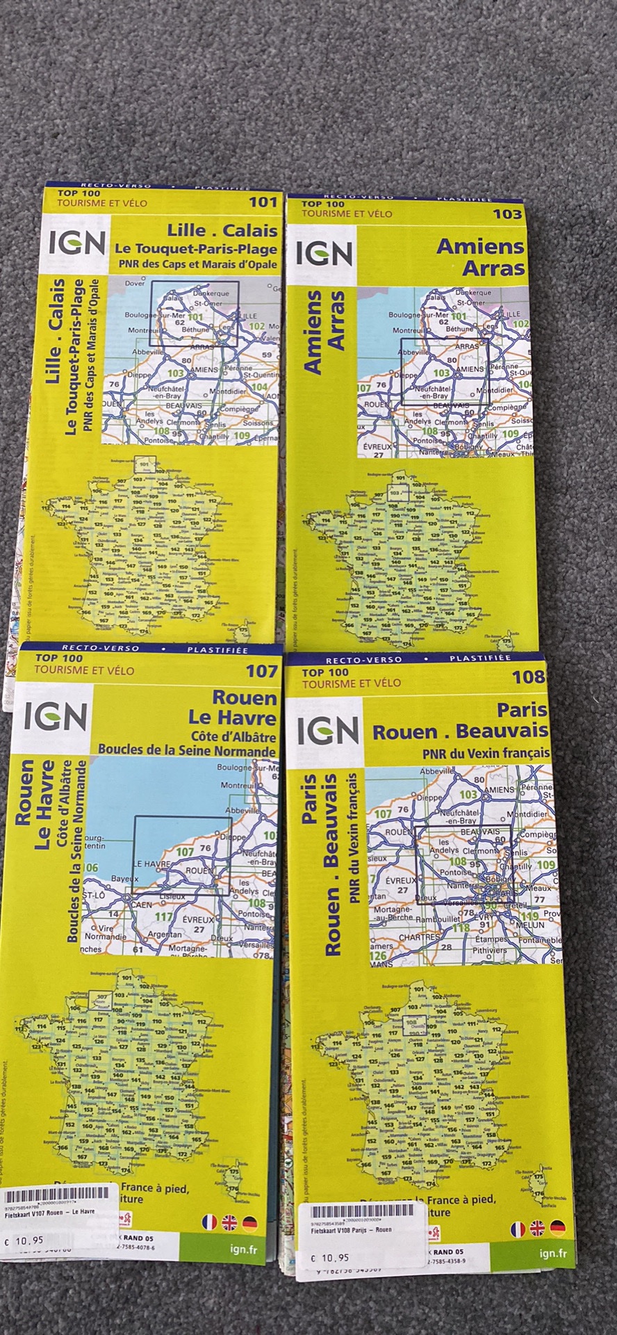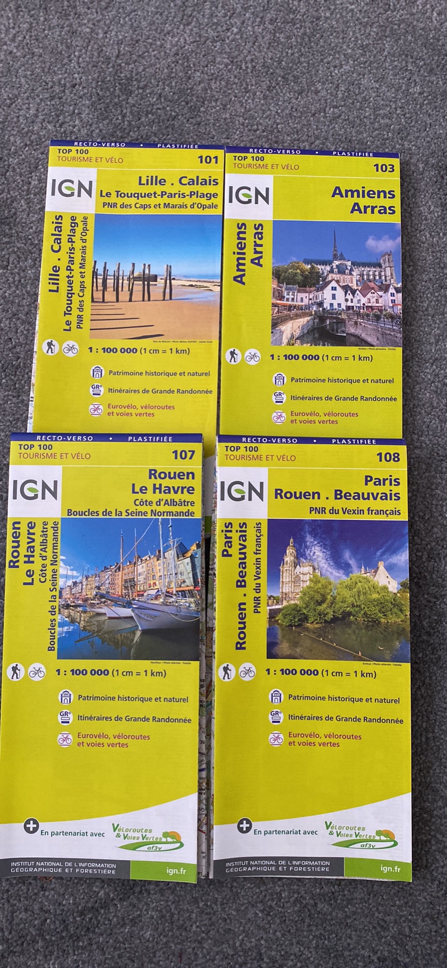 4 fiets en wandelkaarten van IGN te koop.