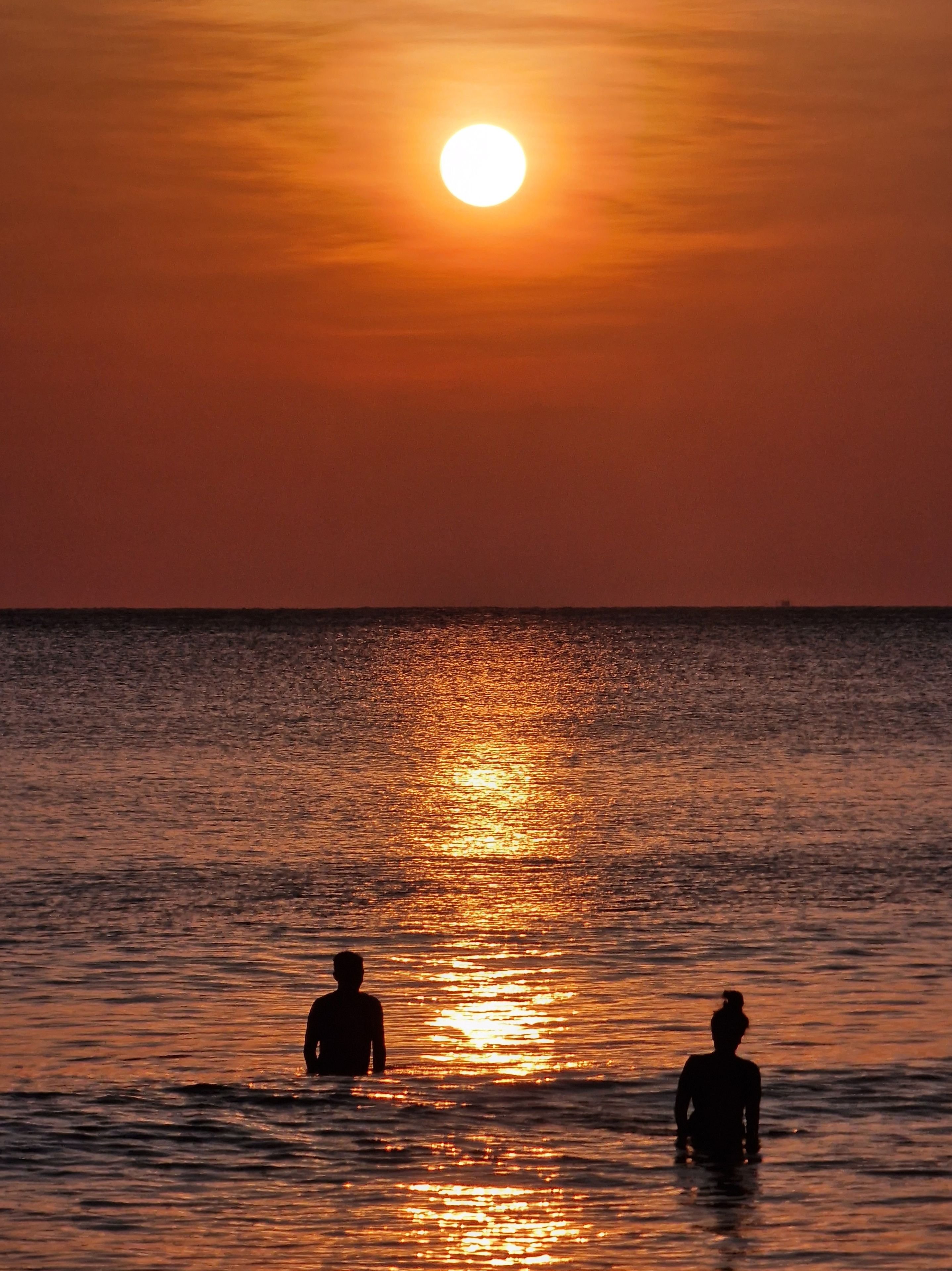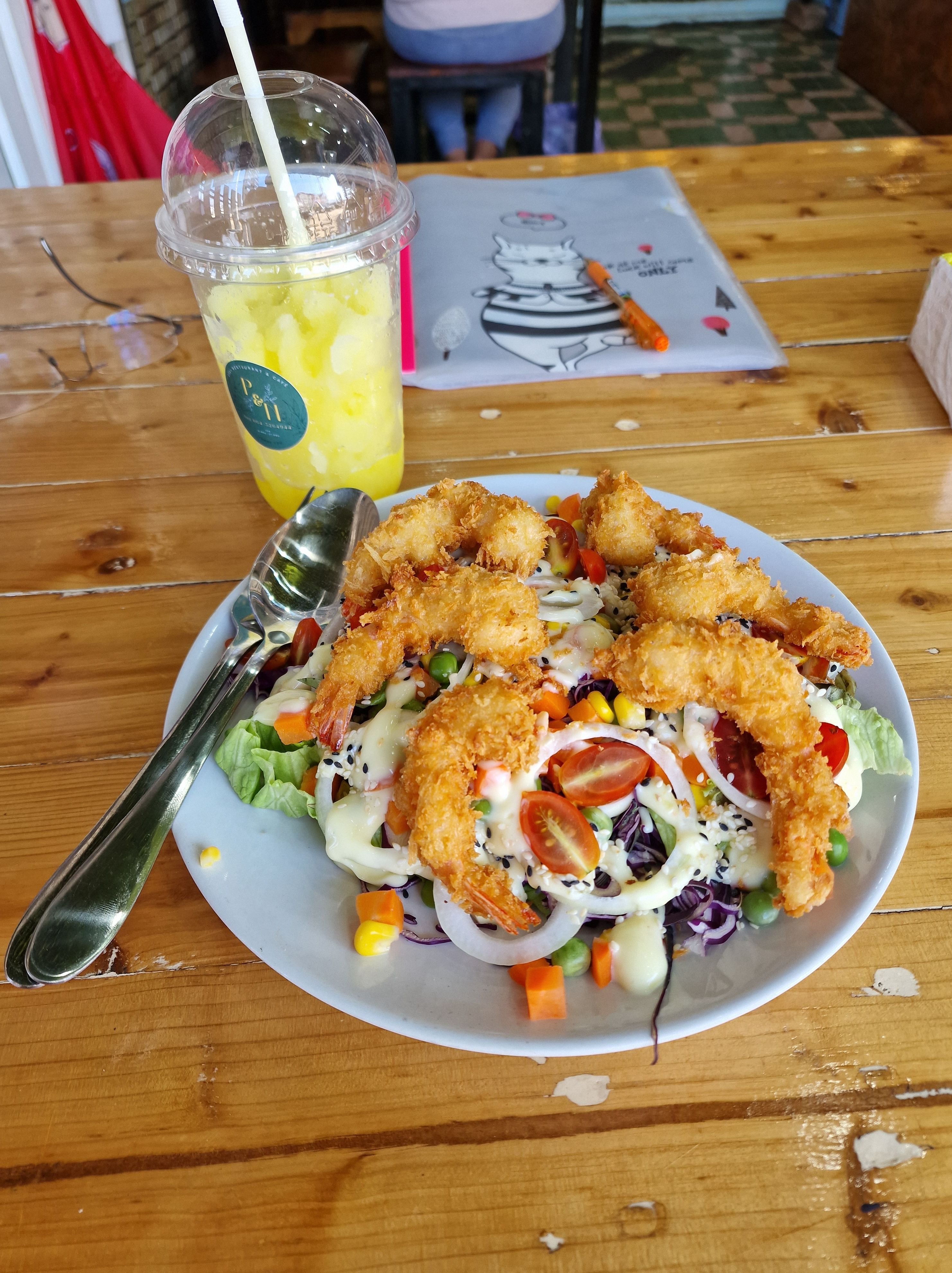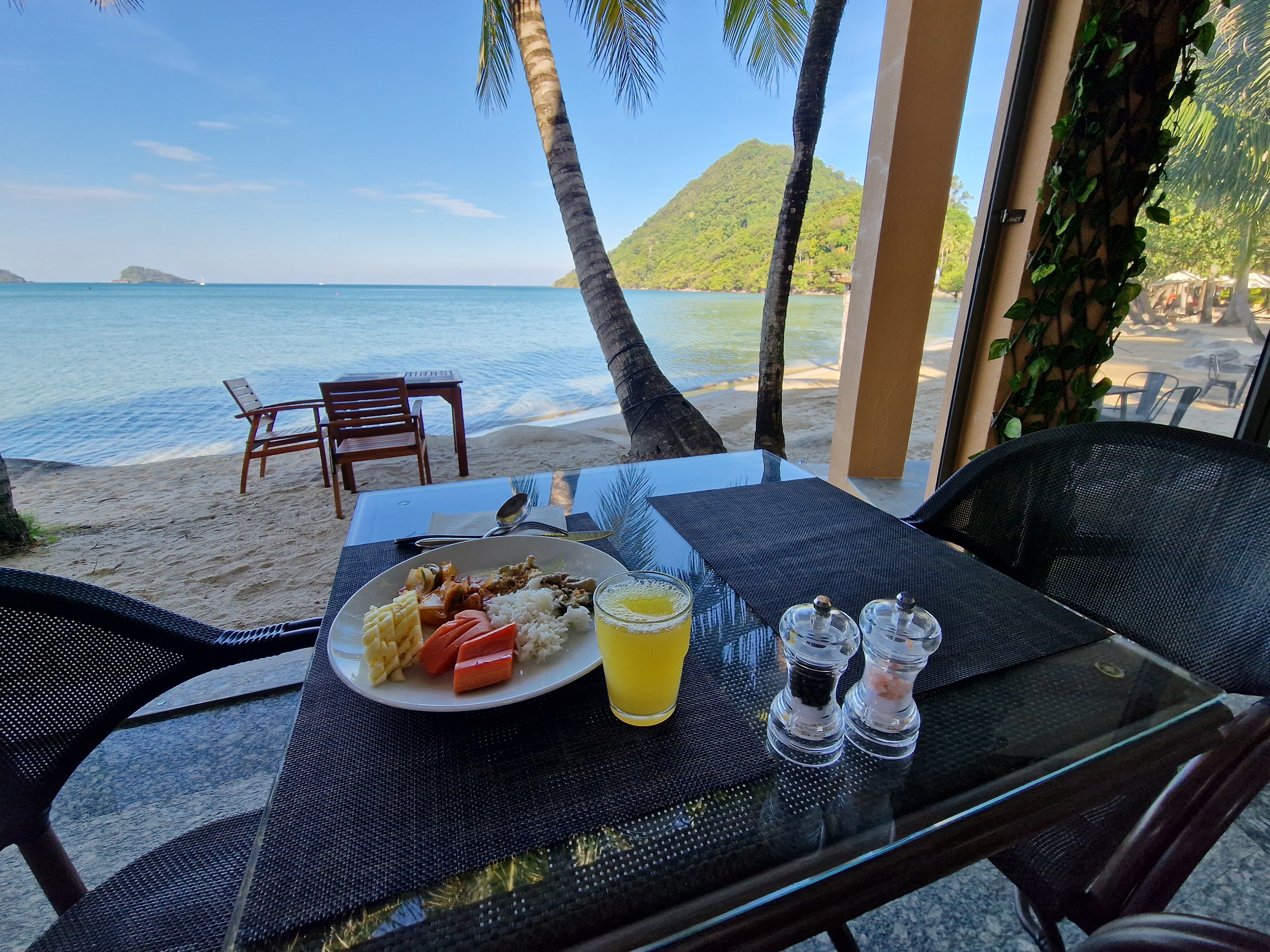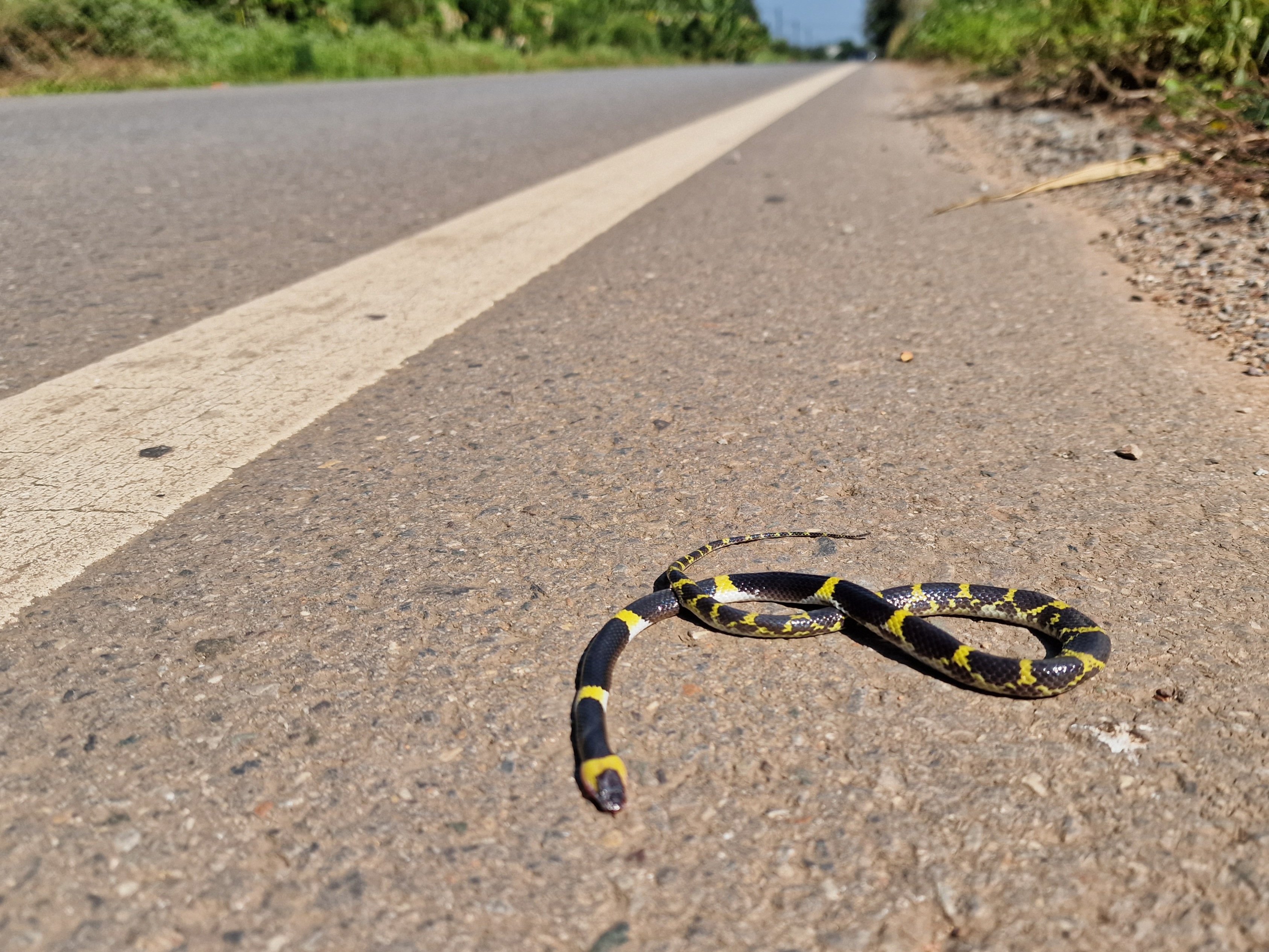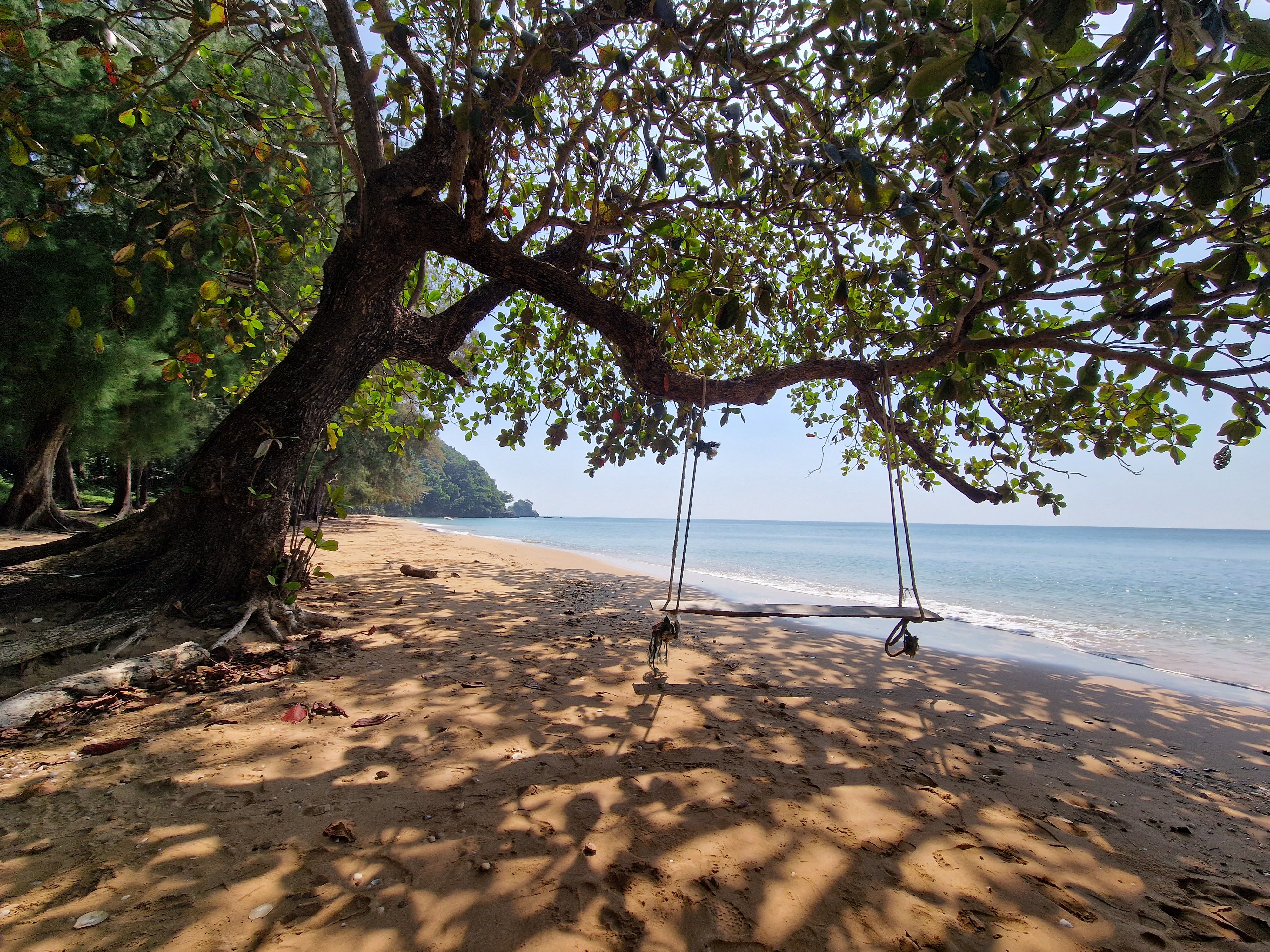 De tuin bestaat uit een aantal moeraseilanden die verbonden zijn met houten brugjes. Het landschap is niet uitzonderlijk spectaculair, maar het is heel aangenaam vertoeven in dit stukje natuur. Het is een mooi rustpunt tussen het Thaise verkeer van de vorige dagen. De brugjes zijn ook een dingetje: nog geen meter breed, geen borstwering en enkele 10-tallen meters lang. Op zich geen punt om er met beladen fiets over te rijden, maar ik behoed me opzij te kijken want ik wil het ondiepe water niet inrijden. Op het tweede brugje neemt een fotograaf huwelijksfoto’s van een mooi uitgedost jong stel. Met wat onhandig gesukkel en een verontschuldigend lachje wring ik me voorbij het koppeltje. Het laatste eiland laat ik voor wat het is want het pad ernaartoe staat onder water en ik kan niet inschatten hoe diep het precies is en hoe dik de onderliggende slijklaag is. Safety first – en het is ook nog wat vroeg om mijn 5-dagen oude fiets erdoor heen te jagen.