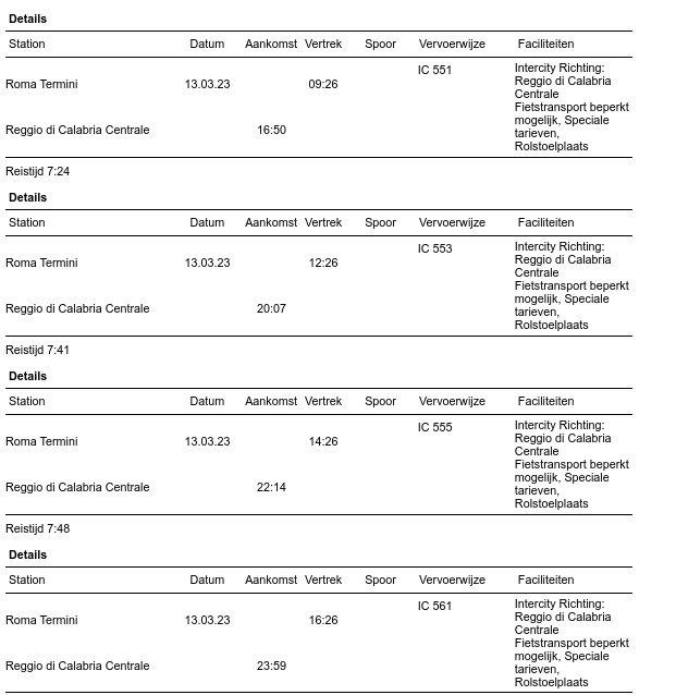 Het lijkt alsof er uit roma termini telkens een paar ic's vertrekken rechtreeks naar regio calabria