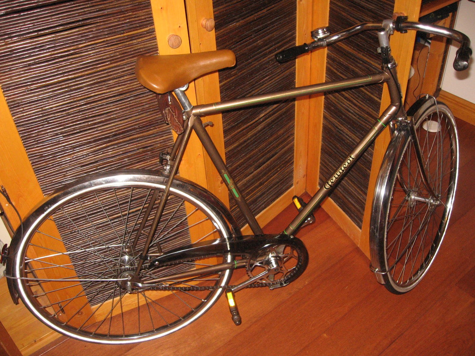 Voor dagelijks "stadsgebruik" een Gazelle nummer 3 uit 1953. Stokoud, maar enorm degelijk. Recent voorzien van een paar nieuw Marathon Plus bandjes. Het mooiste detail an deze fiets: al vanaf nieuw in de familie.