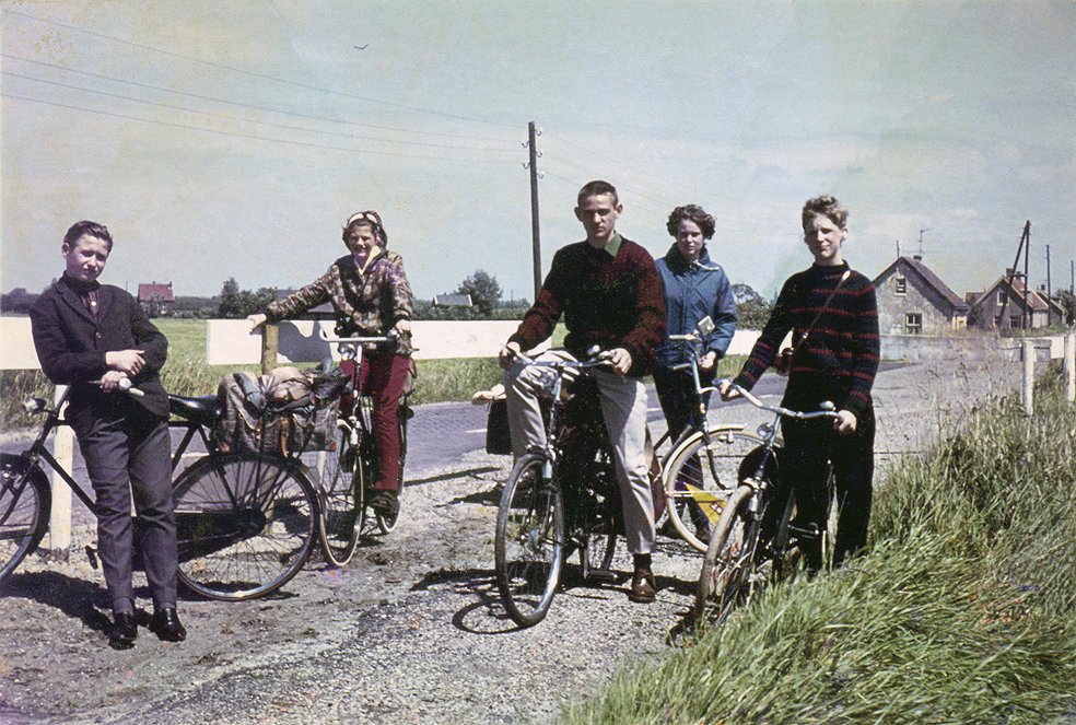 Hier sta ik rechts, tijdens een schoolreis op het eiland Rozenburg in 1965. Er is geen andere foto van die fiets bekend.
