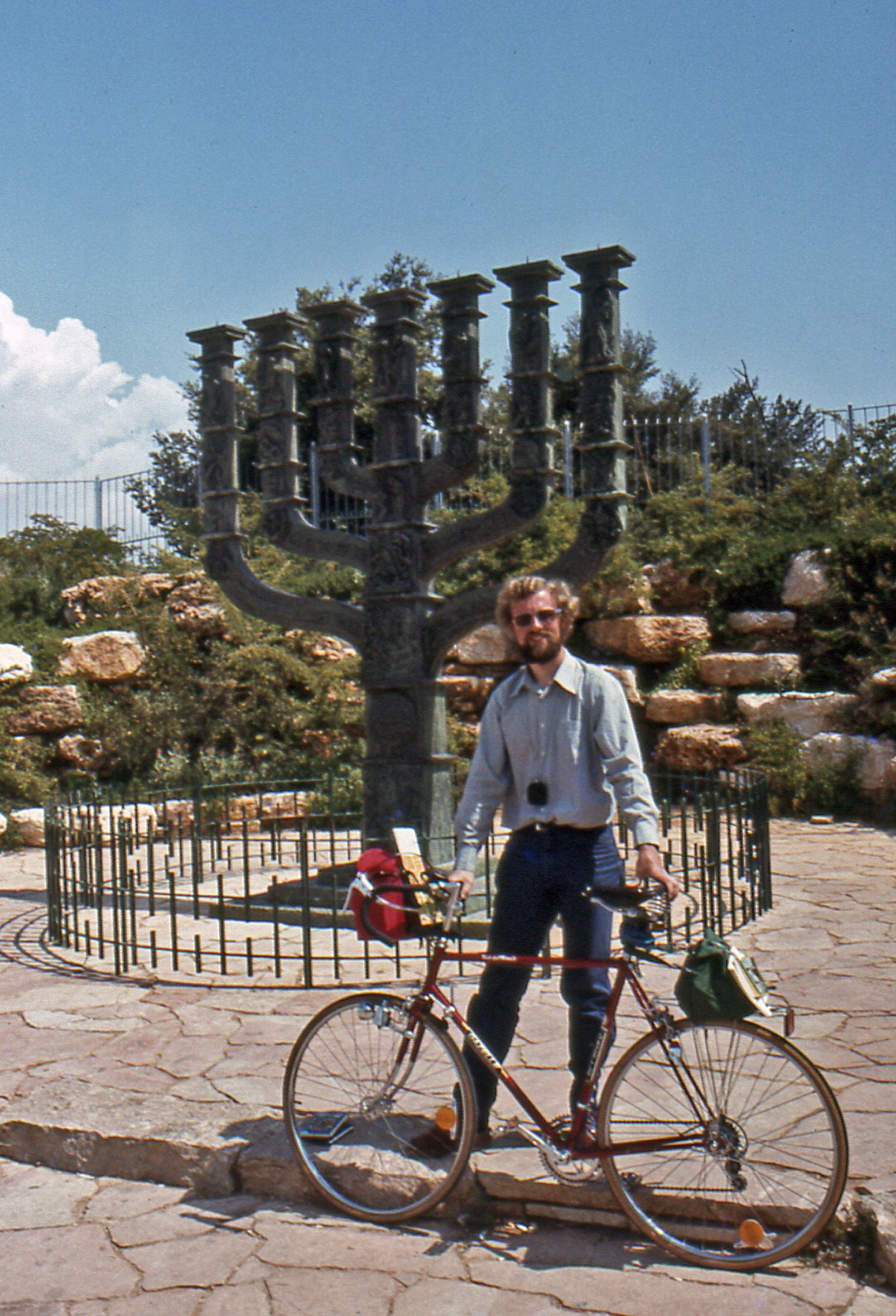 De vijfde fiets heb ik in januari-april 1979 helemaal zelf gebouwd uit losse gekochte onderdelen. Zelfs de wielen heb ik eigenhandig gespaakt. Het frame is een rode Gazelle Tour d'Avenir. Hier gefotografeerd in Jeruzalem in juni 1979. Fanatiek gebruik van gemaakt, maar al in 1982 was ik weer toe aan een nieuwe.