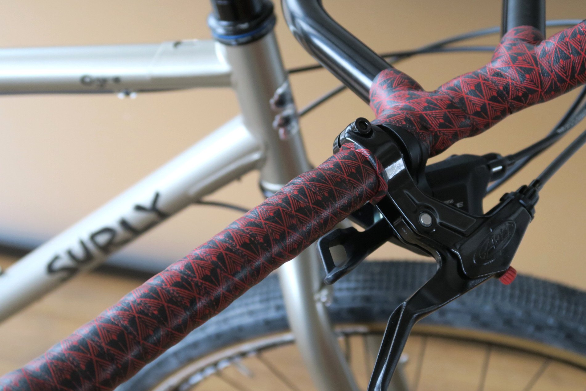 Wat betreft de stuurpen: het is een verstelbare van koga, de Justera volgens mij. Er zat eerst een vlinderstuur op, die heb ik vervangen door een rechte