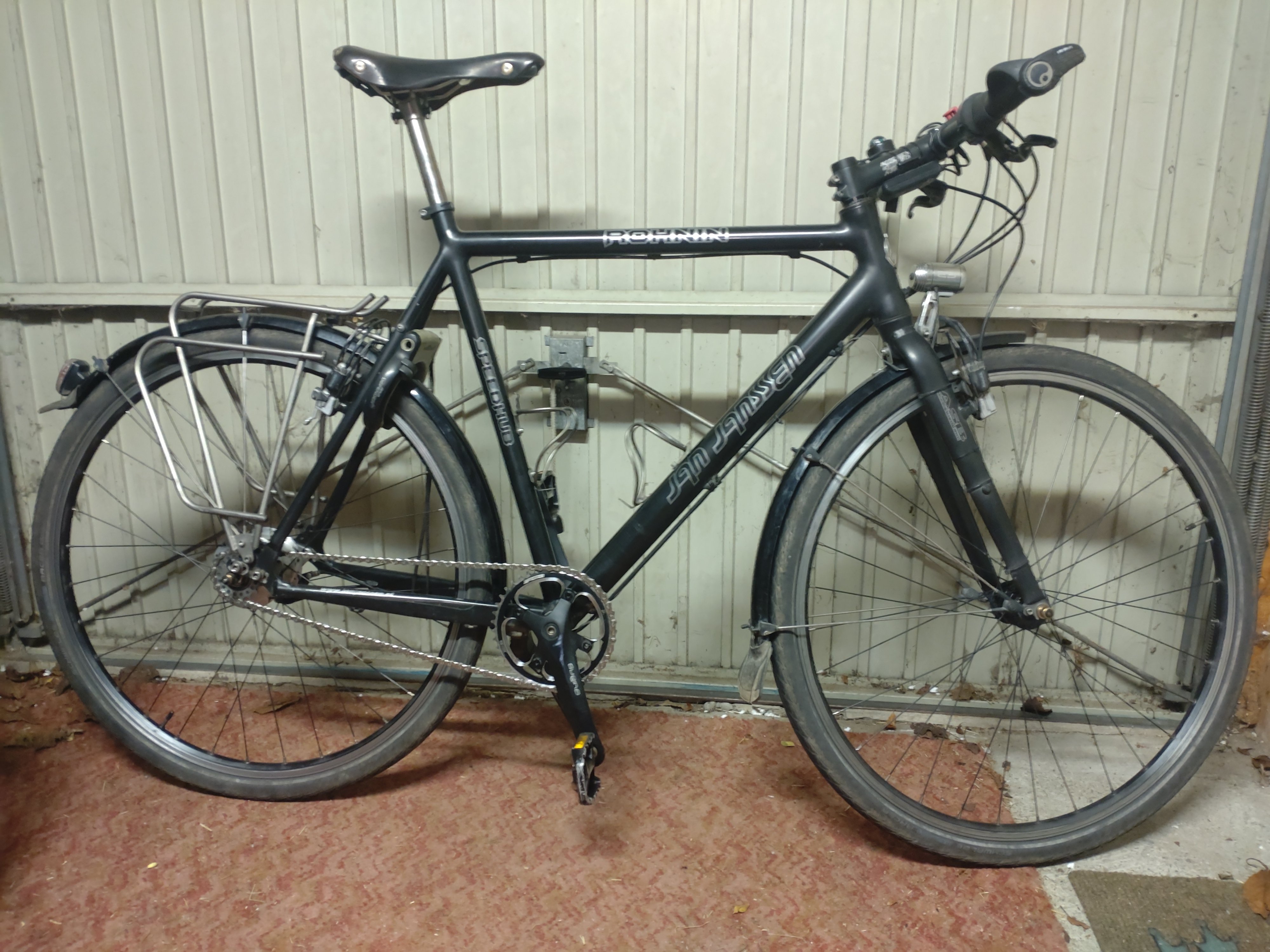 Sportieve Jan Janssen Rohnin uit 2009, echter veel onderdelen al vernieuwd. Geschikt voor iemand met een binnenbeenlengte van ca 90 cm. Zoals je op de foto's kunt zien, ben ik fan van een sportieve positie. Dit is met een andere stuurpen echter prima aan te passen, tenzij je helemaal rechtop wilt zitten. Eventueel met andere onderdelen mag hij ook voor € 800 weg.