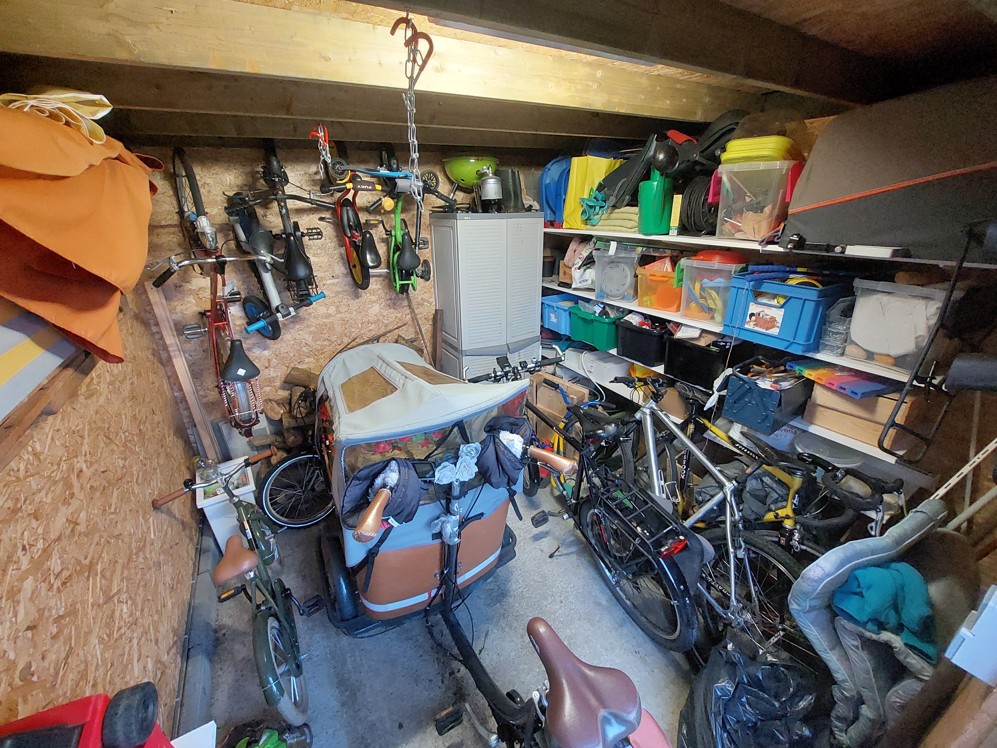 Maar ons tuinhuis staat nu wel wat vol helaas. Onze zoon van 1,5 moet nog leren fietsen. Dus de fietsjes gaan nog niet direct weg.