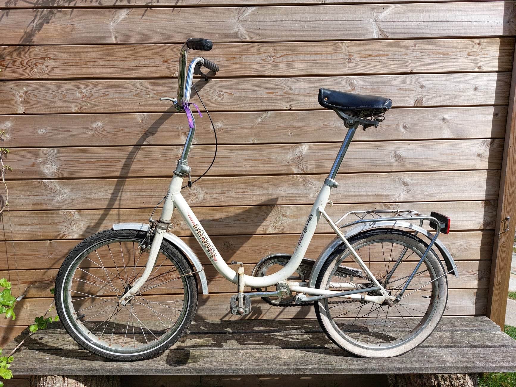 Oude vouwfiets. Erg mooi om naar te kijken. Je kunt zien dat er nog wat liefde nodig is.