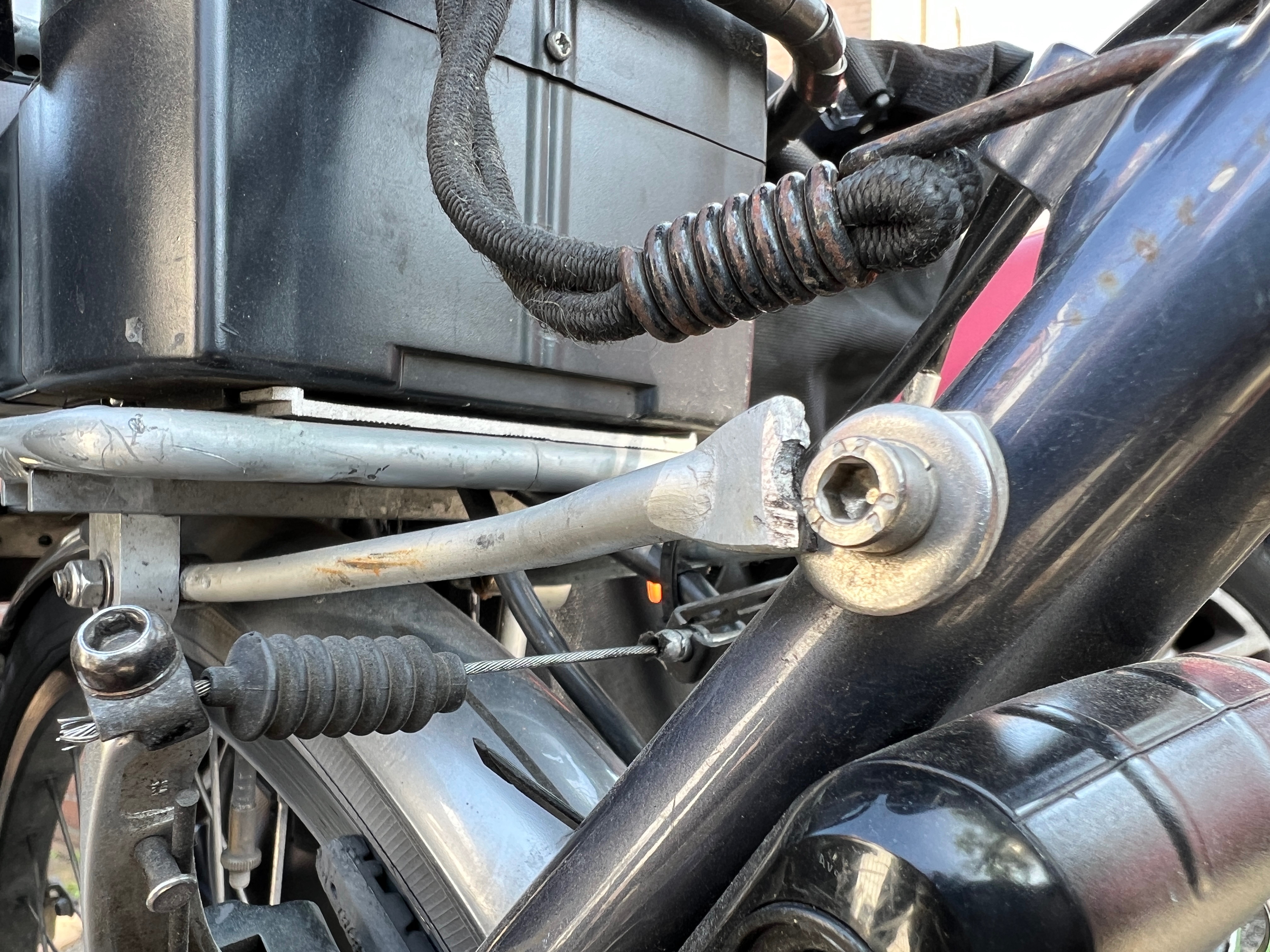 Voor de tweede keer is het aluminium stangetje Van mijn bagagerek gebroken aan mij koga traveler e-bike. De eerste keer kon ik een stalen versie op de kop tikken. De tweede aluminiumversie is nu bij de bevestiging aan het frame ook gebroken bij de bout. Gelukkig net op het eind van een tocht van 500 km met fietstassen achterop.