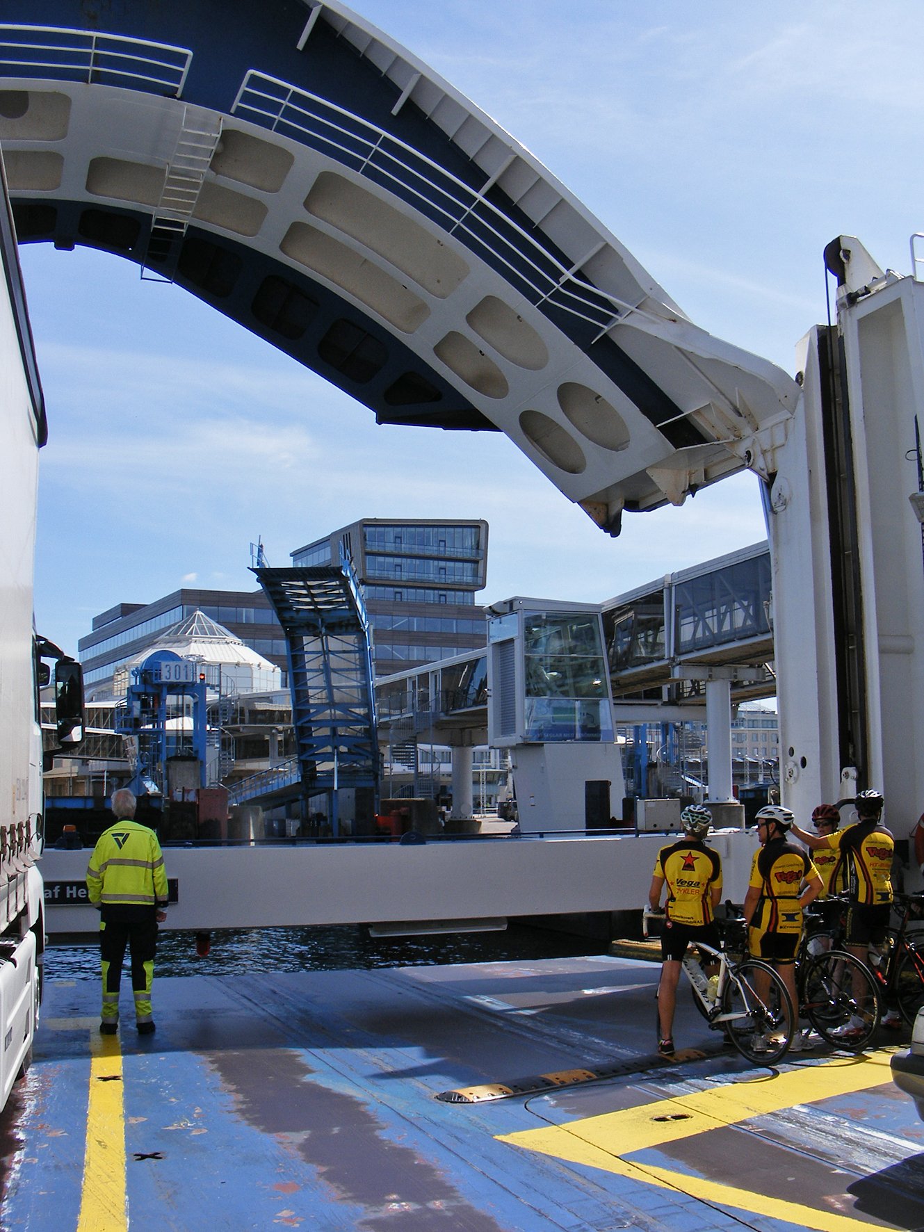 Ik heb gezocht op "ferry gedser rostock bicycles". Je komt dan oa ook op een site van iemand die in mei vorig jaar de veerboot de andere kant op heeft genomen met oa een foto van hoe de fietsen op de veerboot worden gestald.