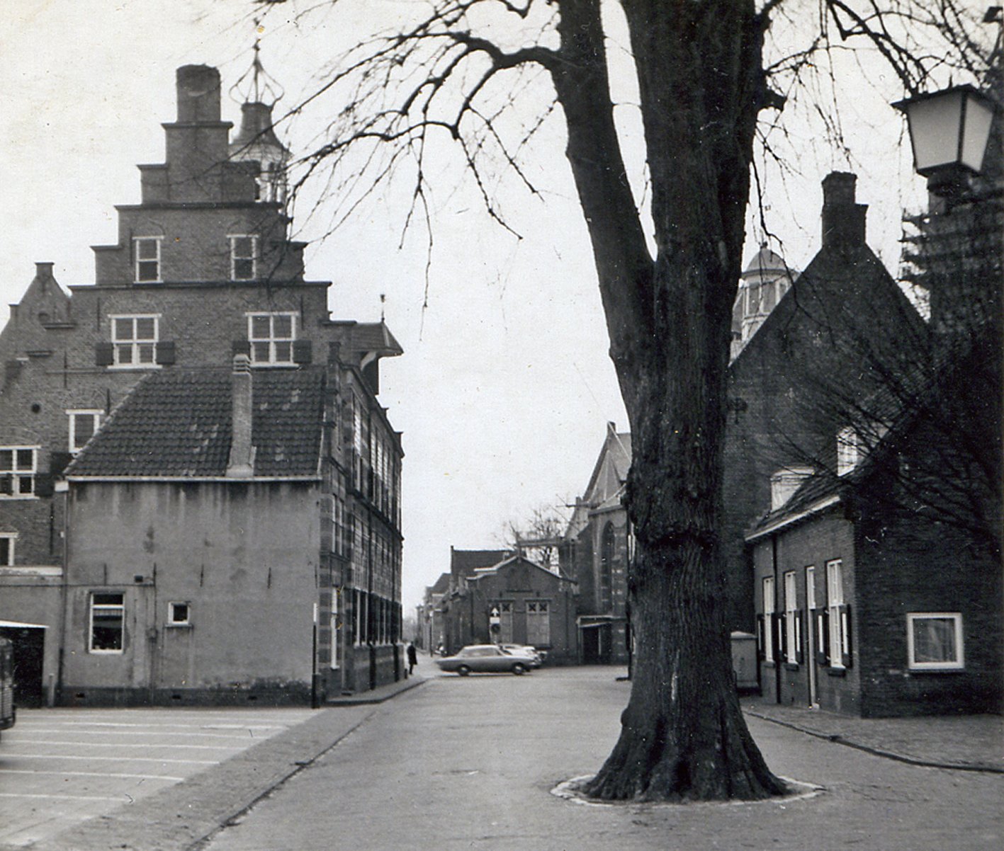 Heel goed Hilver. De straat Wuyvert in Naarden-Vesting. De foto maakte ik op 26 februari 1967. De grote kerk was in restauratie.