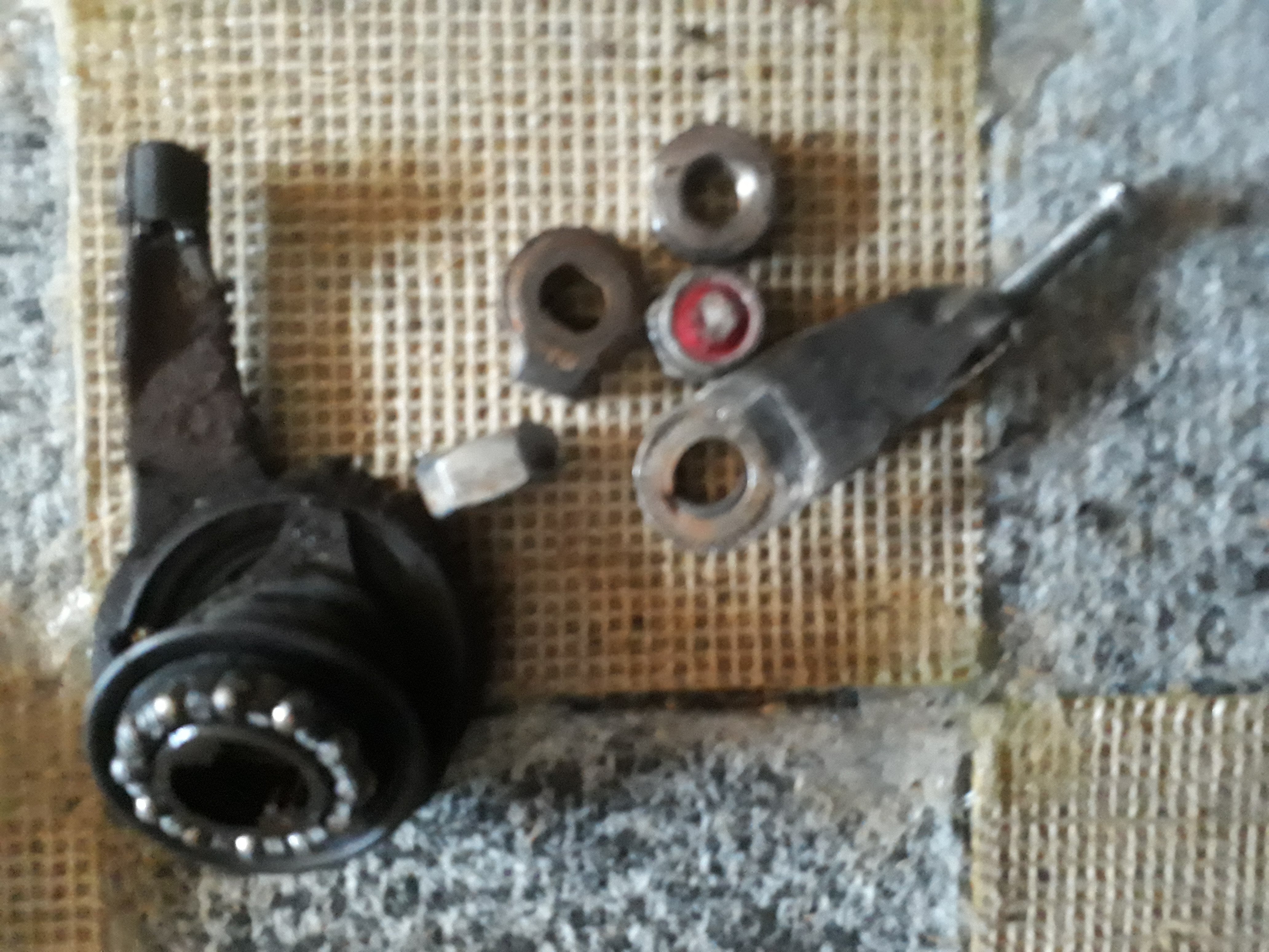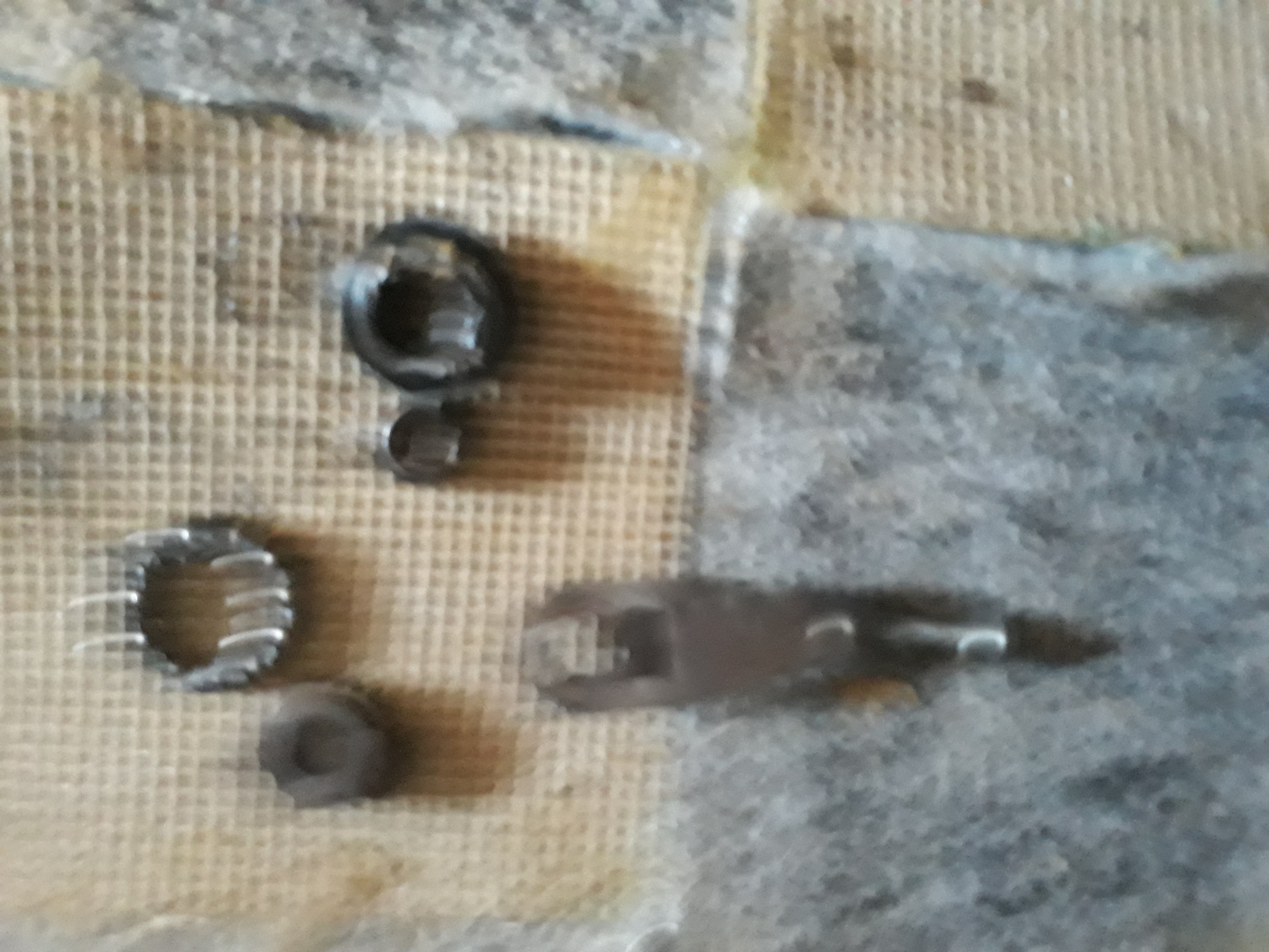 Op bijgevoegde foto's de onderdelen die er vanaf heb weten te krijgen, maar laatste om as eruit te krijgen lukt dus niet echt, aan één kant zit een soort bout, maar als die aandraai en loslaat, schiet het als een soort springveer weer terug, wat dat is, nog niet eerder meegemaakt, paar keer dat dit eerder heb geprobeerd..