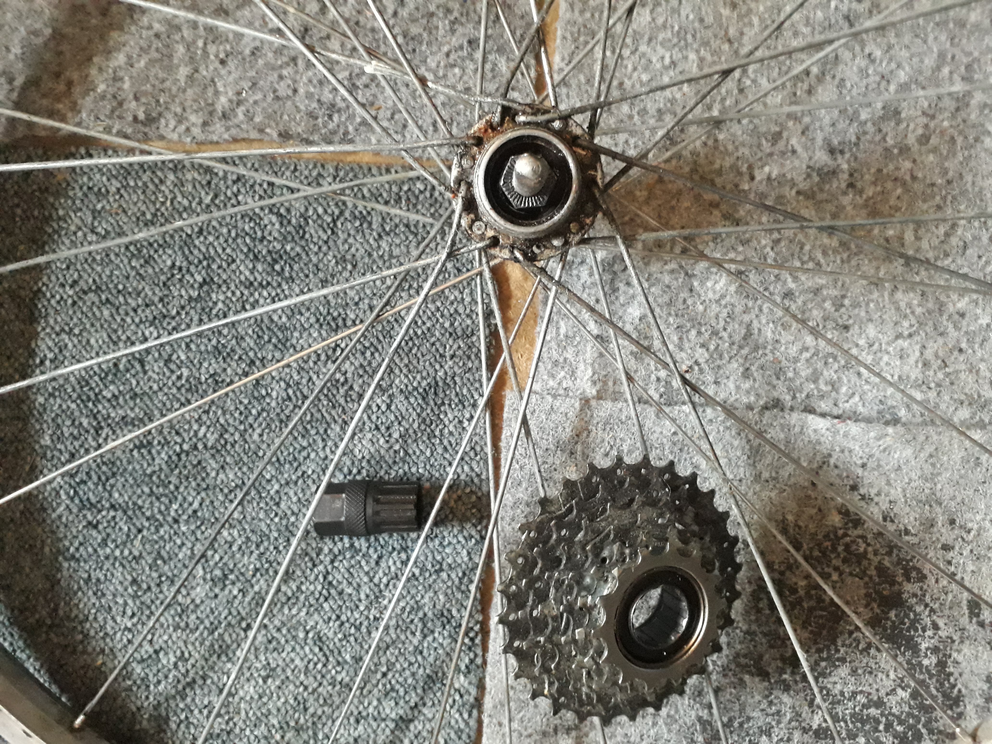 Oh verhip, s of a b, denk doe toch tegen beter weten voor de heck of it het nog eens, na eerder vandaag te vergeefs. Met hefboom, en spaak tussen tenen, en inderdaad naar achteren, dus tegen klok in, als ik het goed heb. Even na paar keer had ik de klem (zeg maar, of greep) goed te pakken, alle macht doordrukken, meestal schiet ik dan uit op iets tot er wat bloed, maar ook eens geluk een keertje, wat ben ik blij, gezien net mijn andere fiets het ook begeeft, niet te geloven, al ben er nog niet, maar toch.