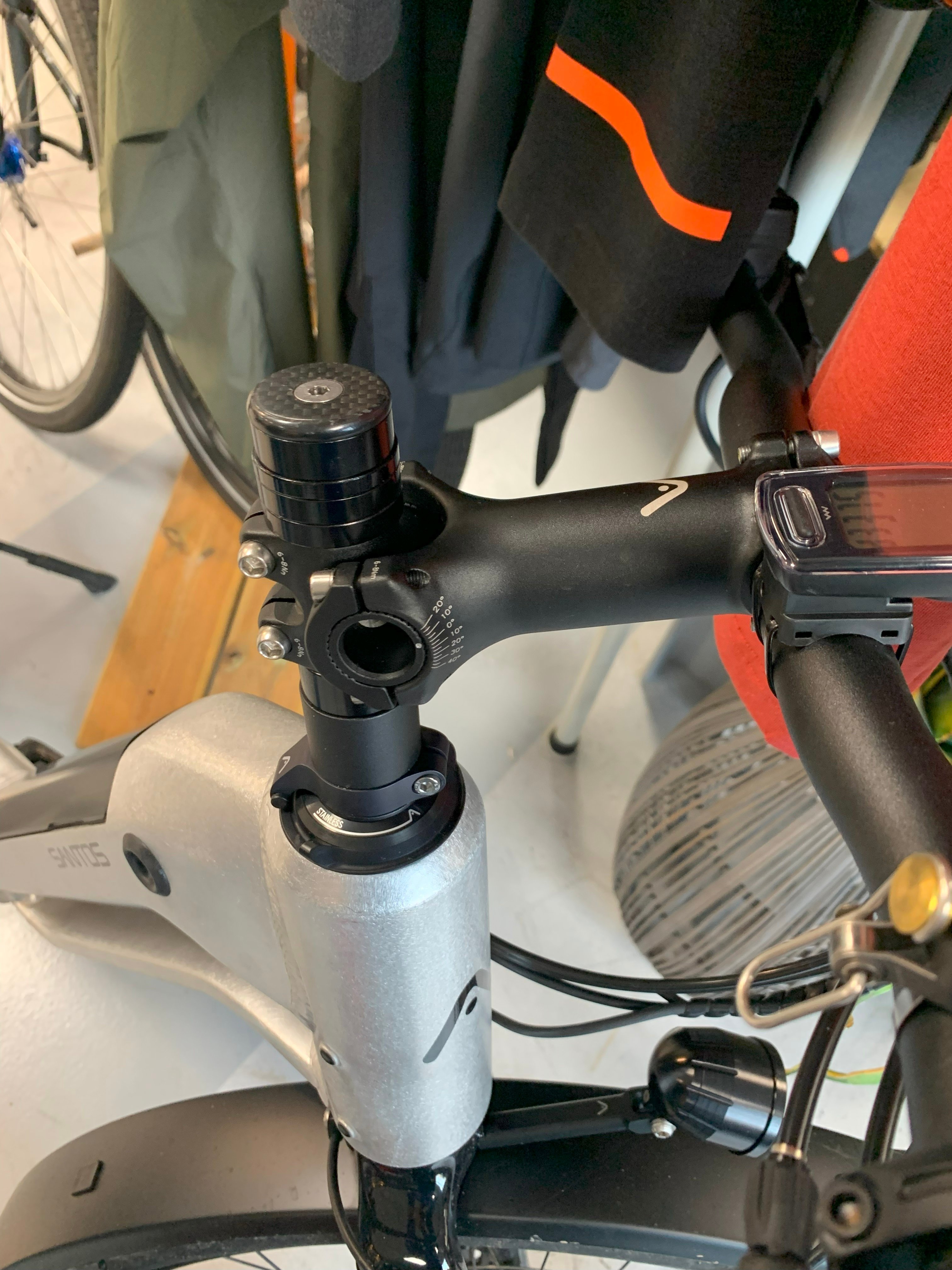 Ik dat een L model me beter zal passen dan de M van mijn proefrit, hier krijg ik nog advies over nav meting, maar de Santos in L formaat zat gelijk beter zonder dat de stuurpen moest worden omgebouwd. Daarmee denk ik ook dat de Santos stuurpen (zoiets zit normaal ook op de JJ) beter is dan degene die er nu even op zat. Dit was gedaan om mij een iets minder sportieve houding te laten proberen (tav mijn huidige Cube). De laatste foto dient ter vergelijking van de stuurpennen.