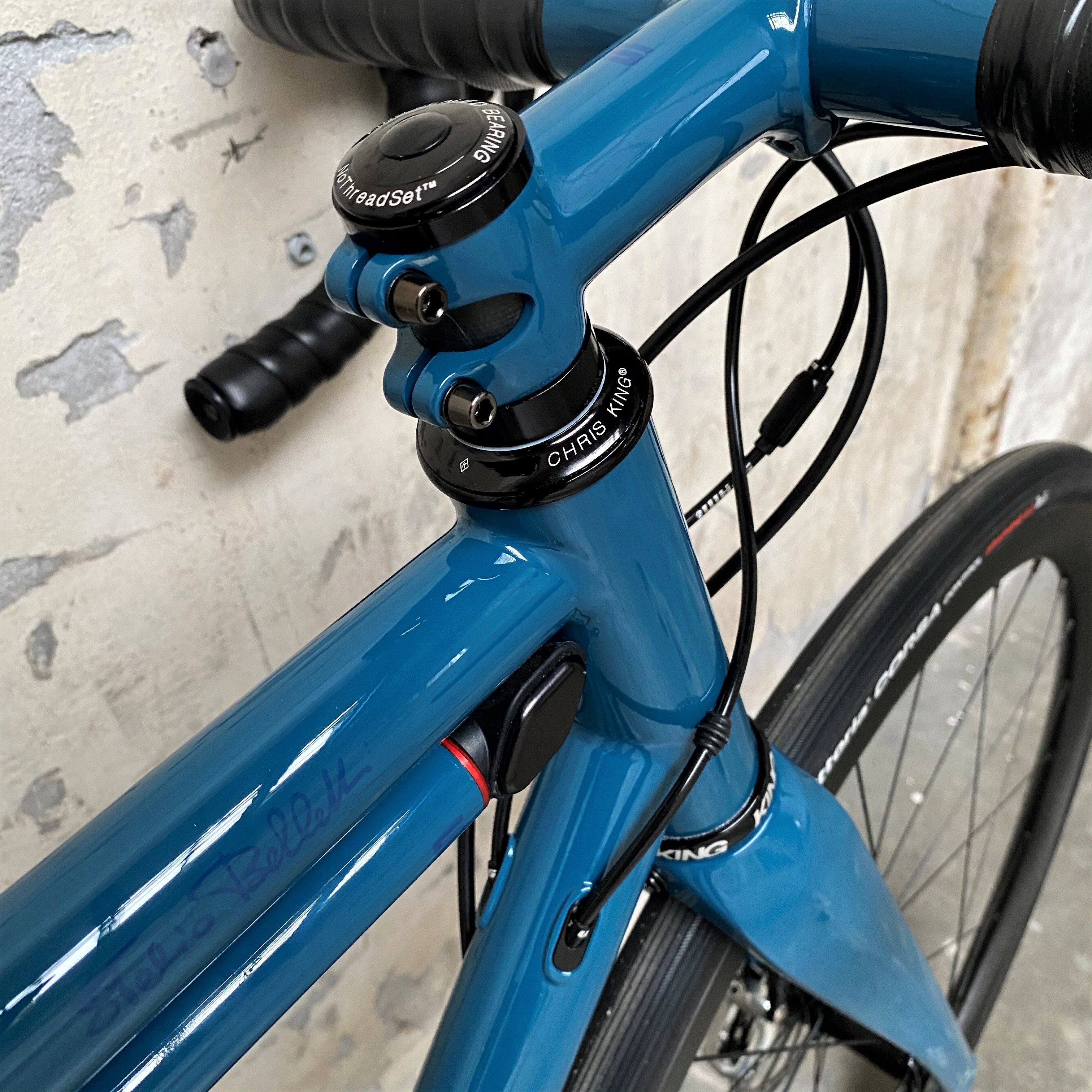 Custom: deze fiets heeft ruimte voor banden t/m 38 mm. Waarschijnlijk nog wel iets meer. Hierdoor is de fiets breed inzetbaar. Daarnaast lopen kabels binnendoor en zit er een T47 BB op.