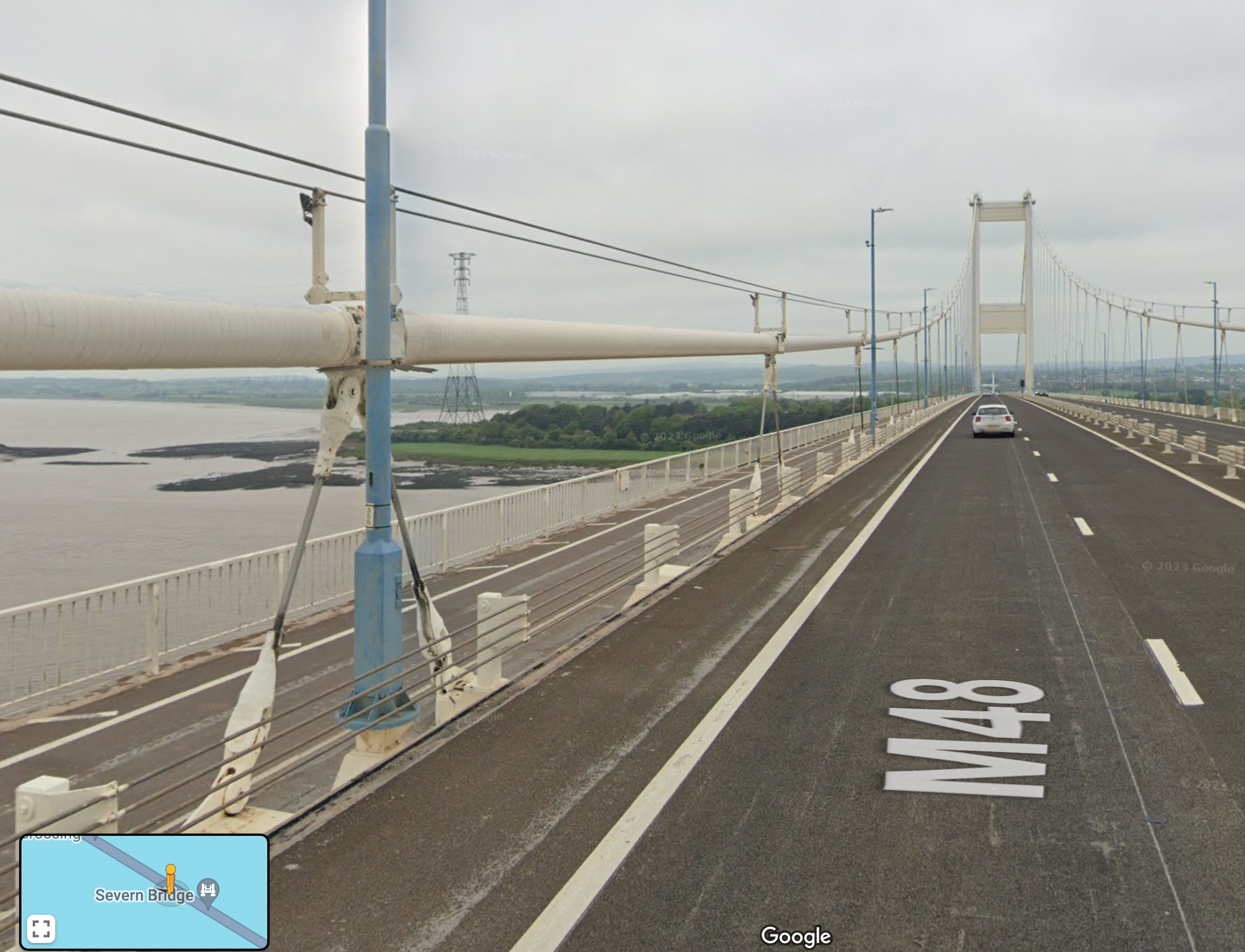 De M48 gaat over de Severn Bridge, en niet over de Prince of Wales Bridge. Je noemde het de Prince of Wales BridgeMartin E. van Doornik schreef: Vergeet niet dat daar links verkeer is, dus het raad plaatje is links van de weg M48 genomen.