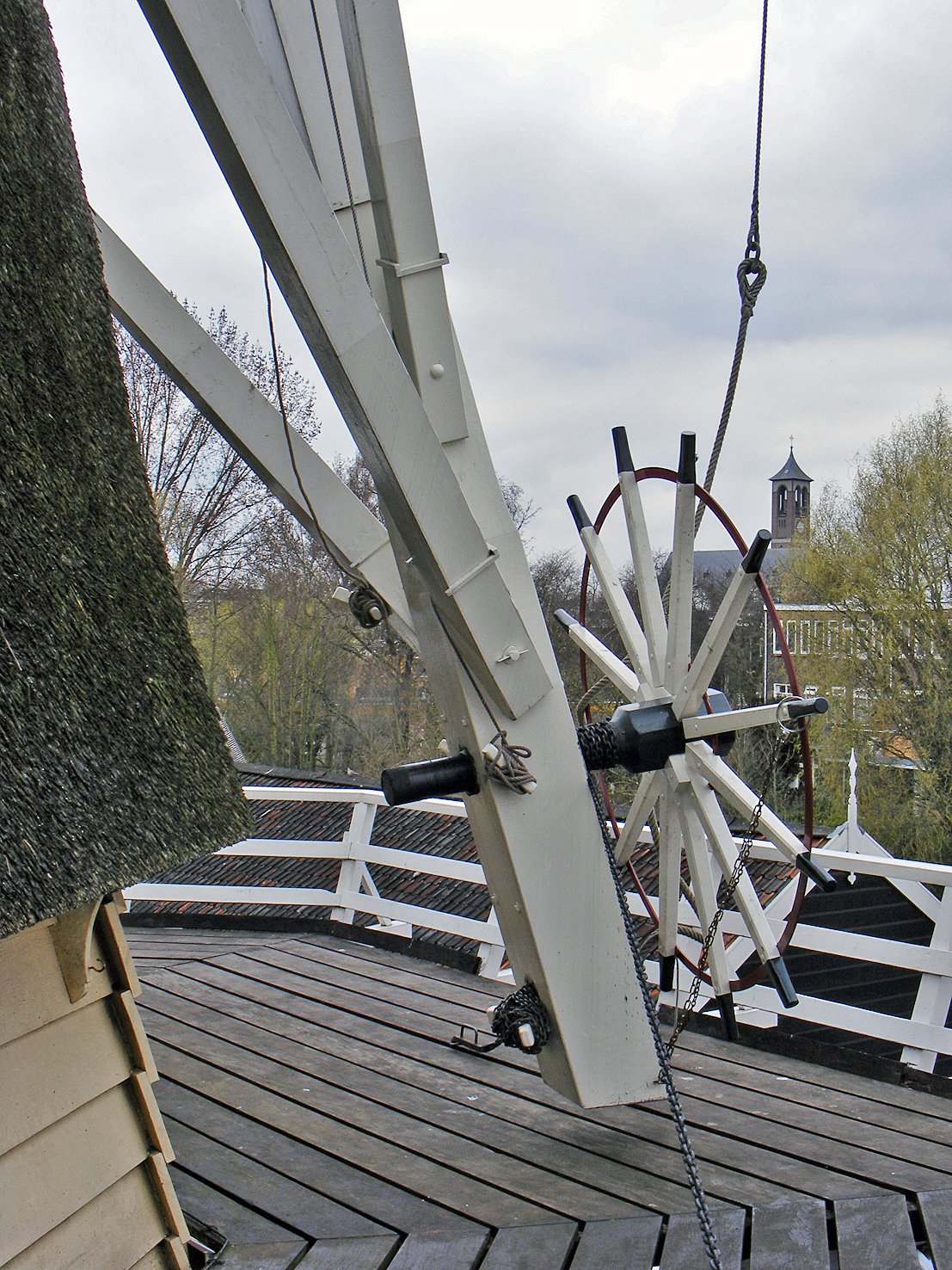 (aan het slap hangende touw links en het strakke touw in het midden te zien, beide dun, draaide de molen)