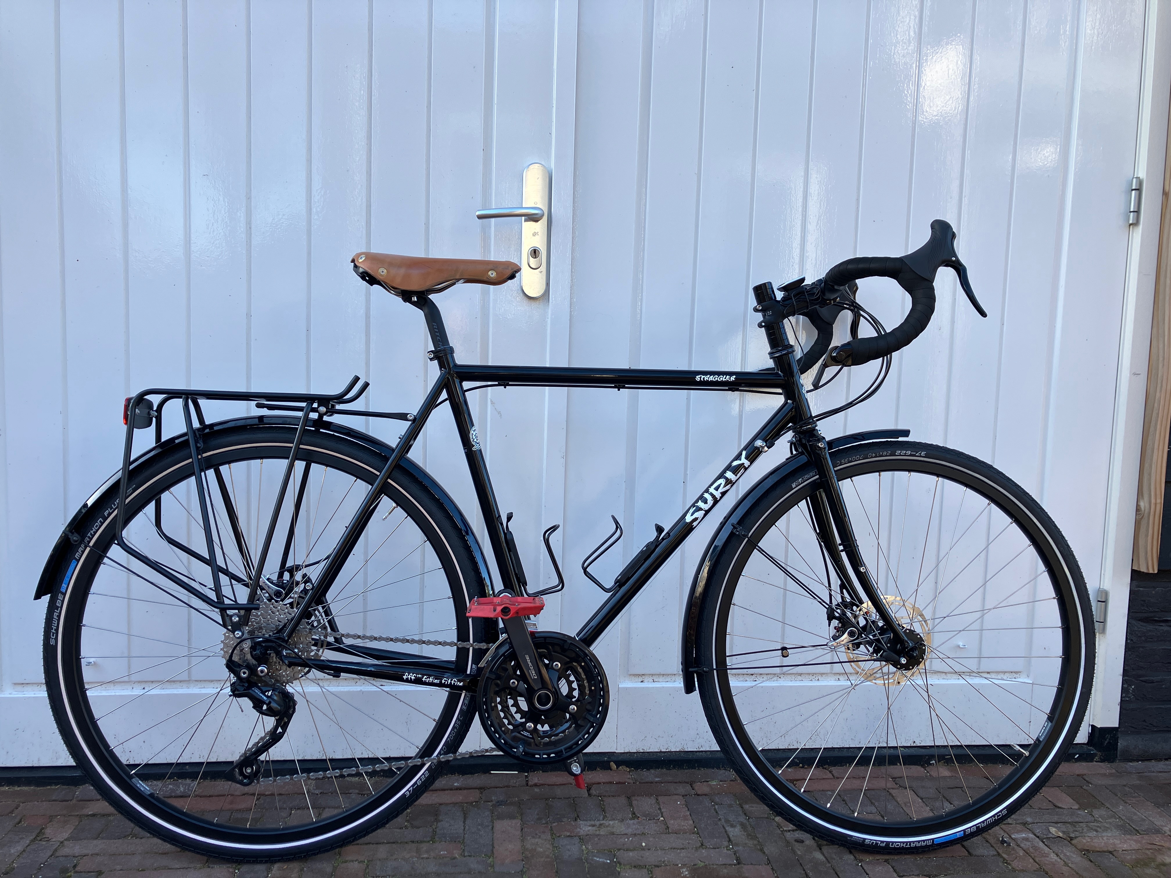 Dank voor het meedenken allemaal! Het is uiteindelijk een Straggler frame met MTB opbouw geworden. Zie foto. Bar end shifters werken heel mooi. Zojuist een korte testrit gemaakt. Rijdt super! Was leuk om zo’n frame zelf op te bouwen. Wielen heb ik overigens laten maken. Cups balhoofd persen ook laten doen. Rode flatpedals worden nog vervangen.