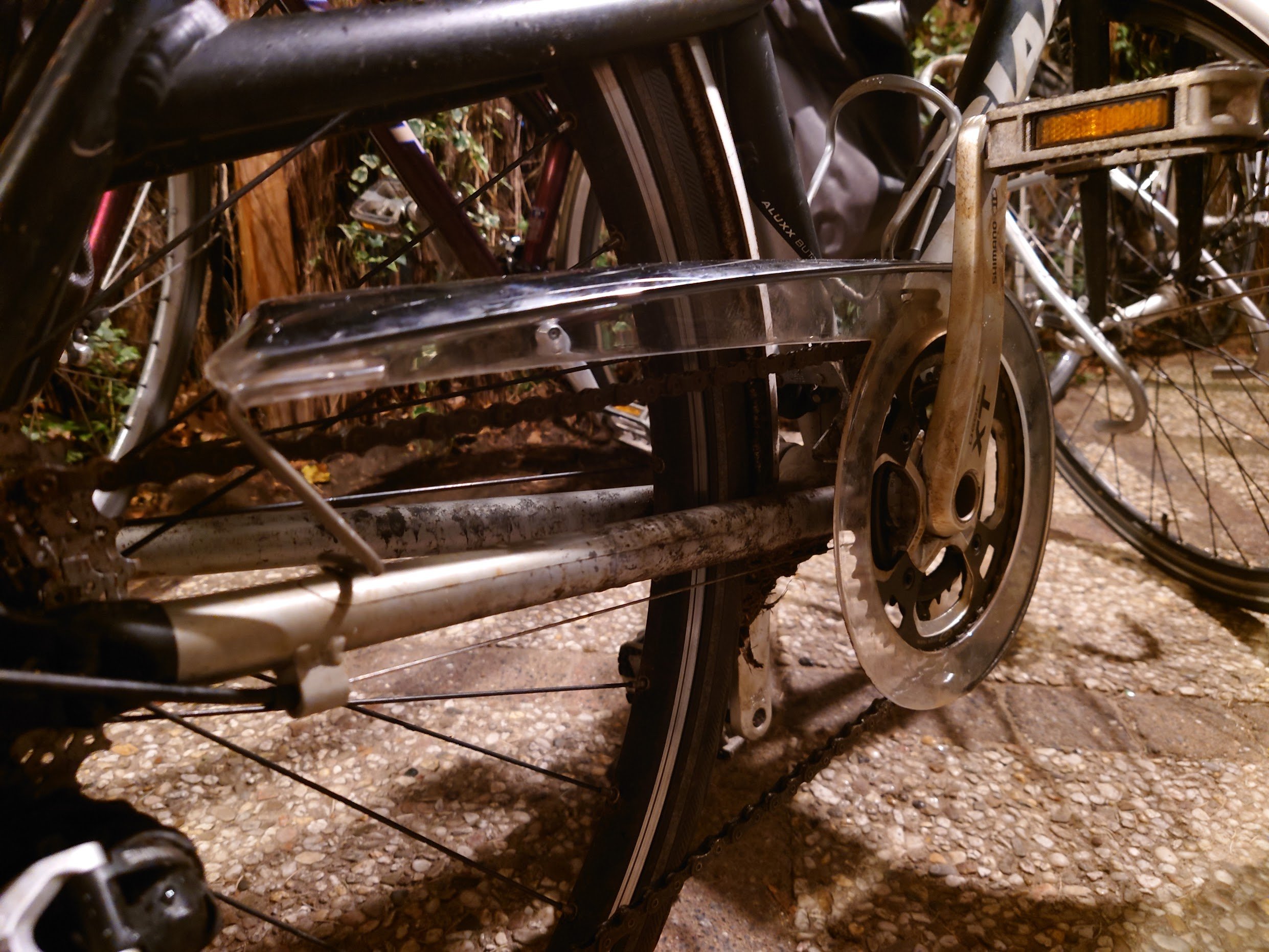 Ik ben niet zo het fietskuistype, maar het werd stilaan tijd. Een vroege lente-opkuis zeg maar. Omdat het volgende week droog blijft. Oh, en ook voor de 22e keer nieuwe olie in de naaf gegoten.