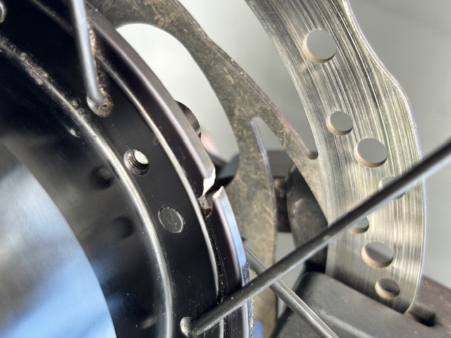 De remschijf zit er ook nog voor, dus een eventuele botsing met een steen of weet ik wat is praktisch onmogelijk zonder ook de remschijf zwaar te beschadigen, en dat merk je wel... ;-)