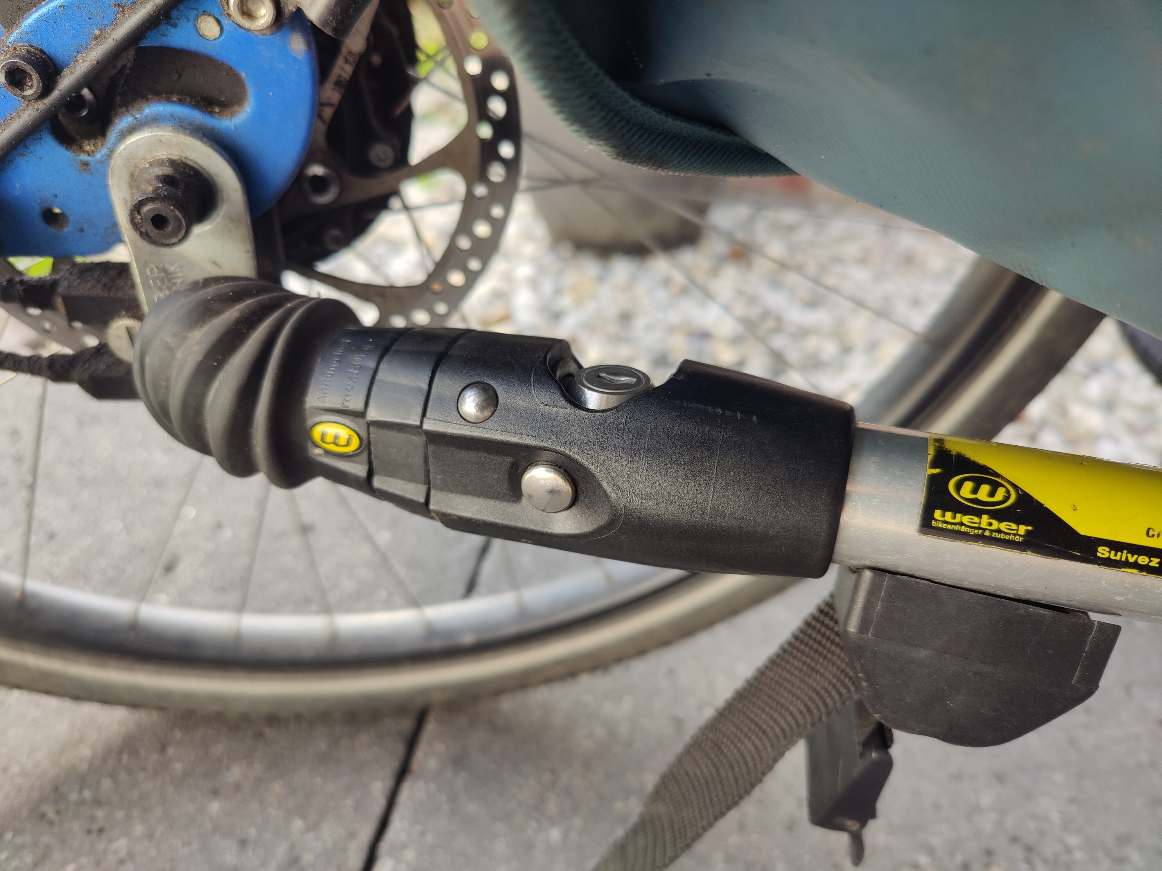 Je bevestigt de Hase Trets aan je fiets met een Weber koppeling, zie foto. Daarvan hebben we er 2, zodat je bijvoorbeeld kan wisselen. De Weber koppeling is heel stevig en kan ook met een sleutel op de trekstang worden vergrendeld, waardoor de fiets niet af te koppelen is als je deze bijvoorbeeld ergens parkeert.