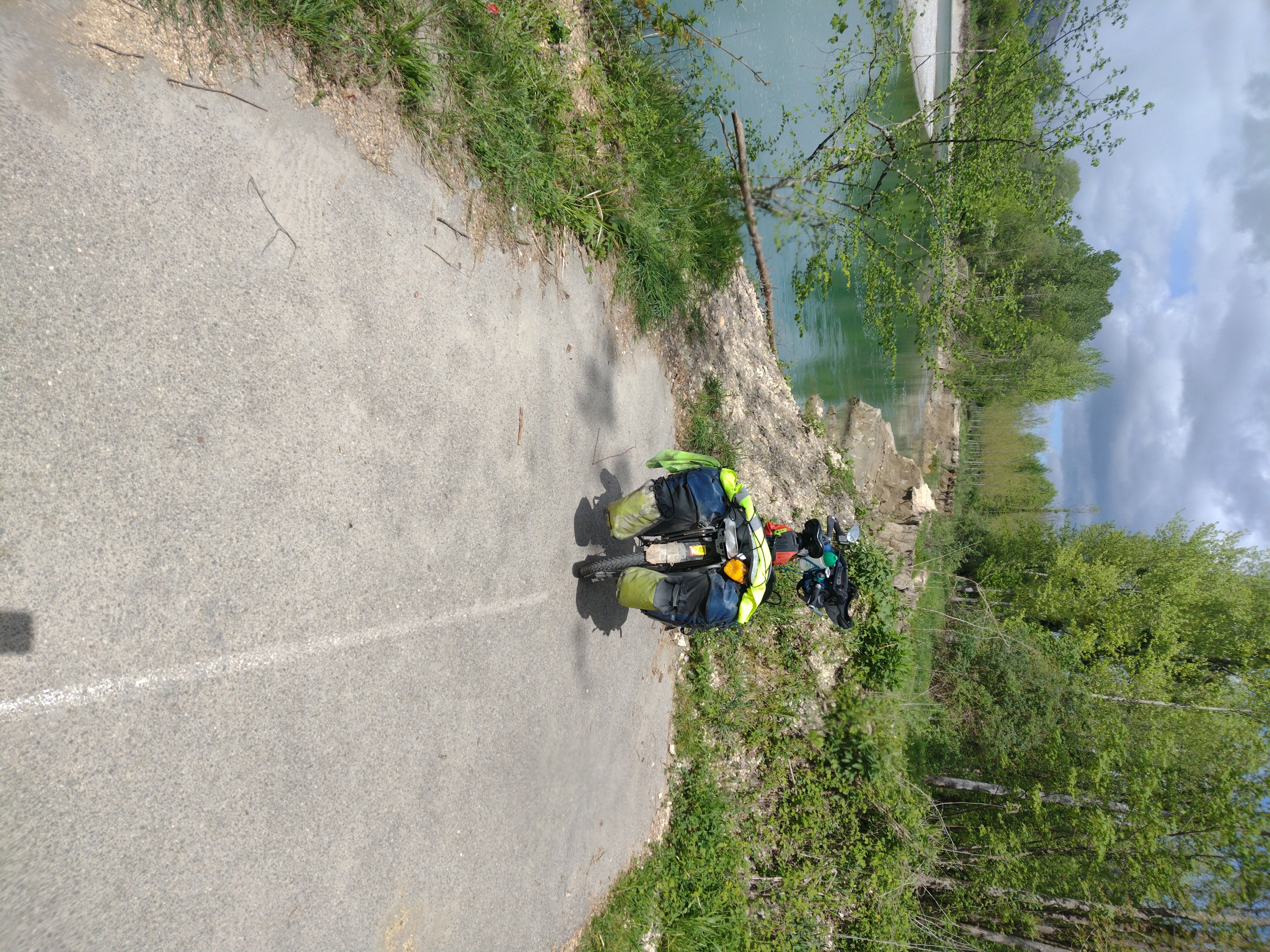 Naar beneden is er alleen de nieuwe weg. Breed, volkomen vlak zwart asfalt met slome bochten en af en toe een haarspeld. Het gaat hard en ontspannen. Soms verkrampt mijn bovenlichaam even en dat geeft meteen instabiliteit in de fiets. Het is niet andersom. Ik moet de fiets ‘loslaten’ en alleen een beetje meebewegen. Het is magisch hoe die fiets de weg dan weet. We komen heel beneden aan. Zo haal ik Gjirokaster vanavond nog wel.