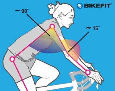 Daarbij is het volgende van belang. De optimale fietshouding is dat romp en armen een hoek van ongeveer 90° maken.