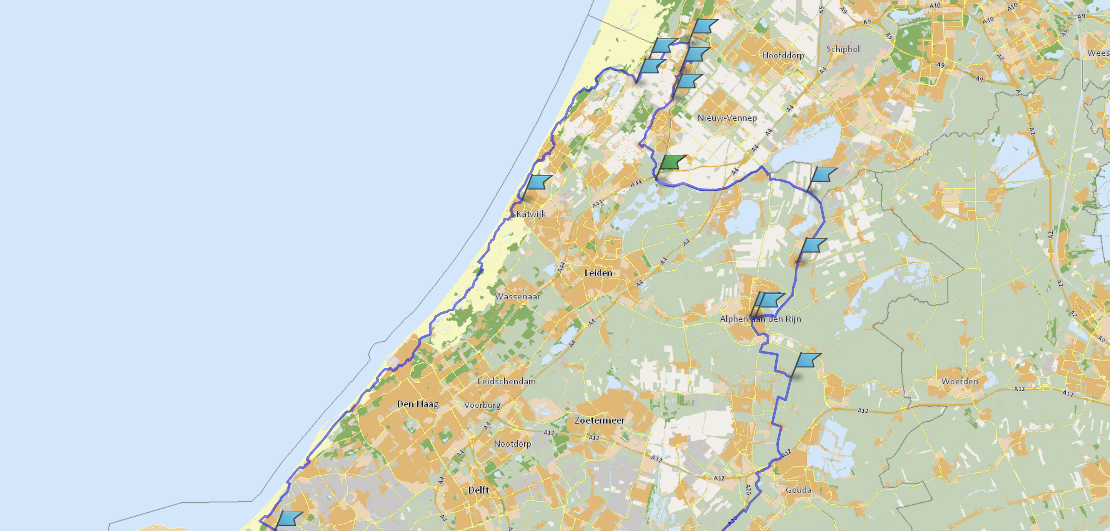 De knooppuntenroutes en gpx-tracks van de dagafstanden komen nog op de site. Bij het verzamelen onder de Euromast deel ik nog kaarten van de dagroutes uit.