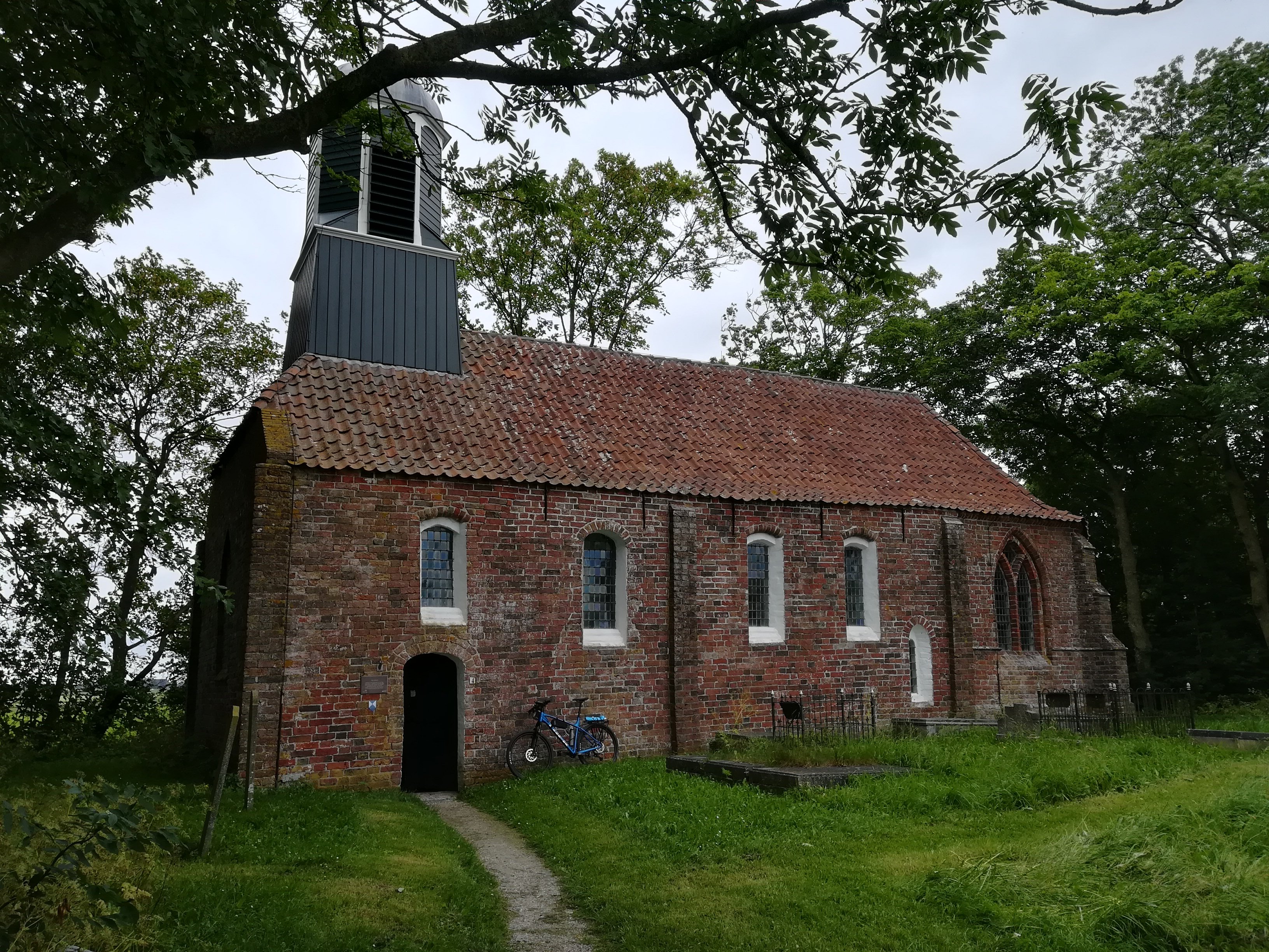 Dan over het Groningse land naar Hornhuizen met koffie bij Wongema tegenover de kerk.