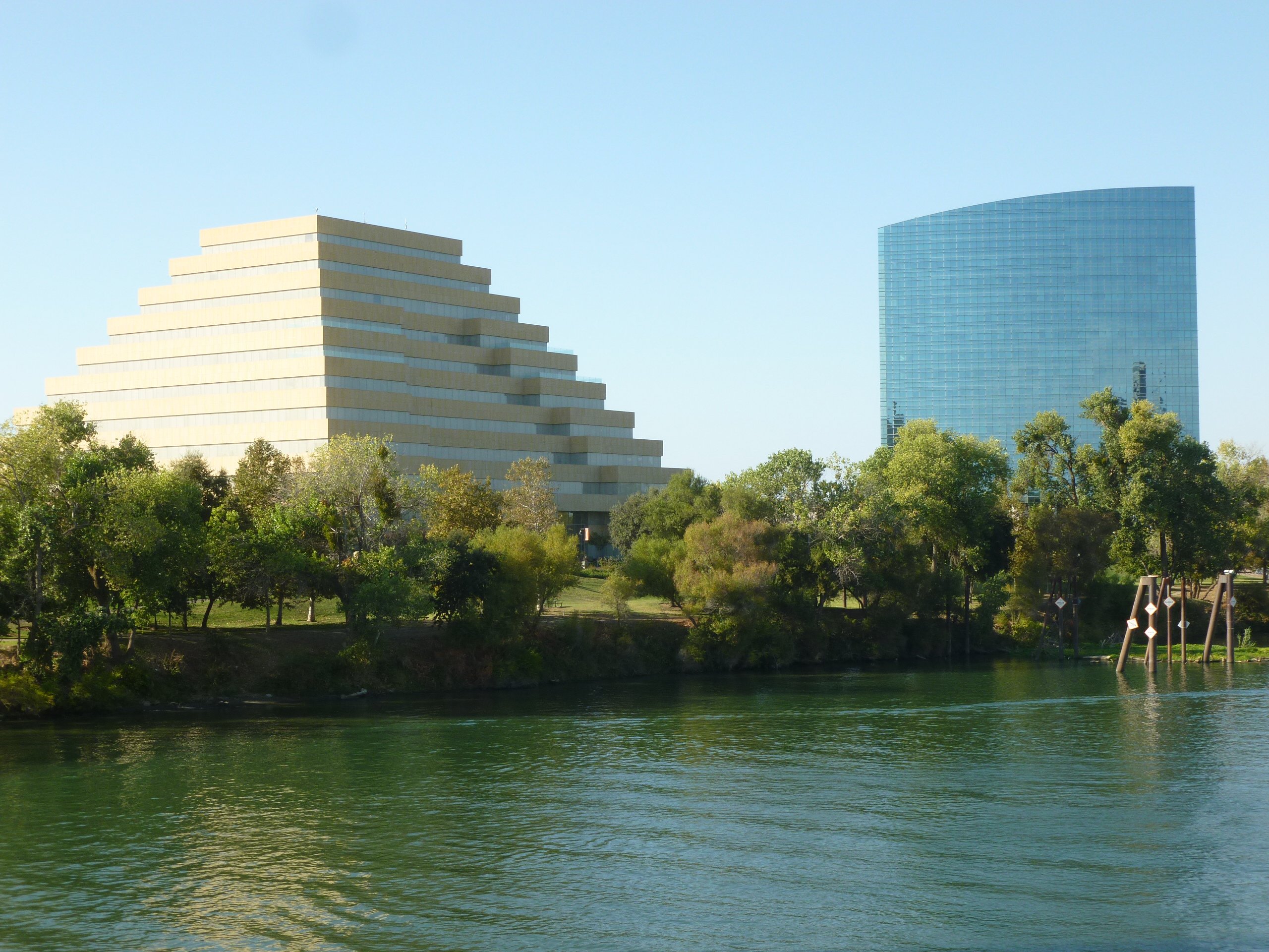Gezocht op "building like pyramid usa" en kwam op dit. Ik verwachtte het gebouw in de USA gezien je fietstochten daar. Zie ook streetview.