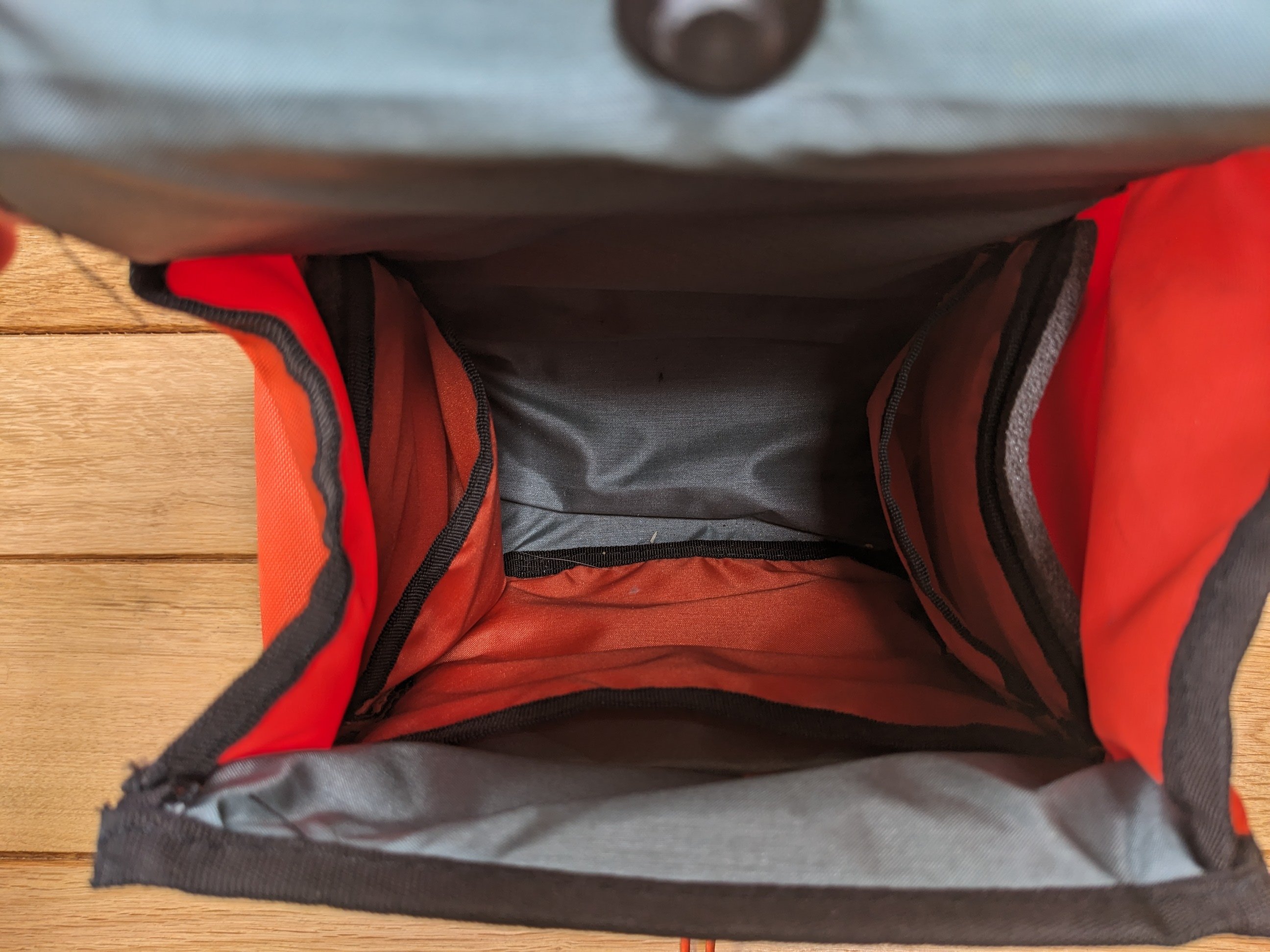 Een ruim binnenvak (bijv. voor kleding en eten) + zijvakjes (bijv. voor telefoon en portemonnee).