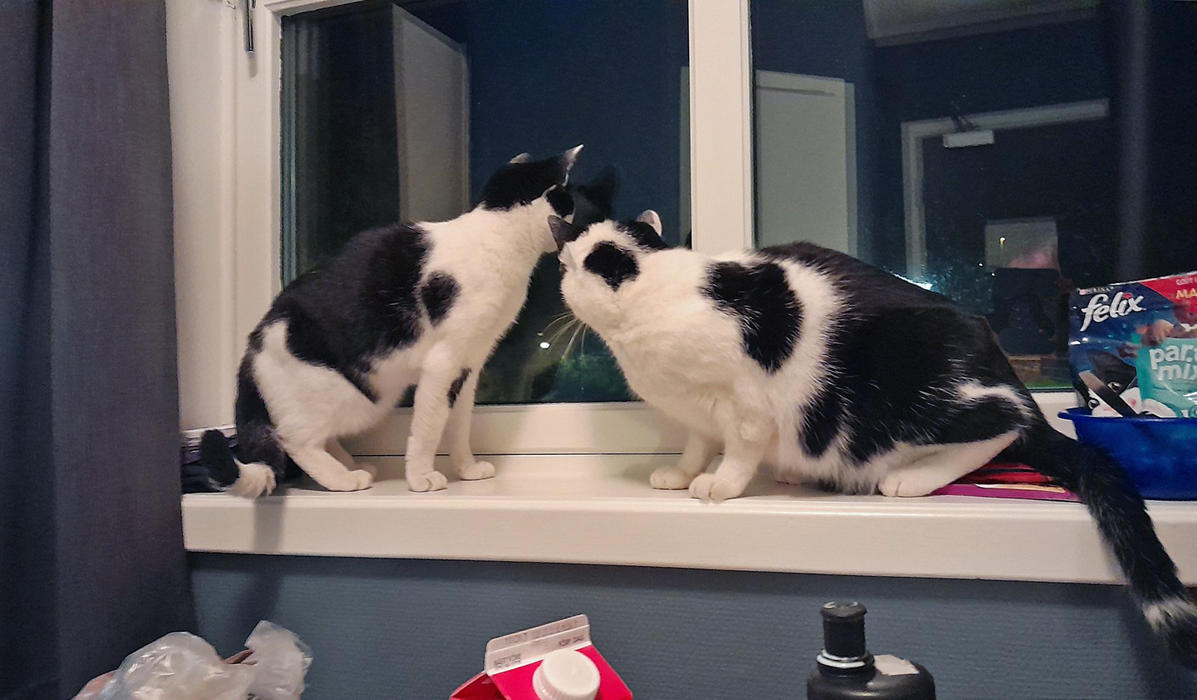 Hier onze eigen katten, geloof het of niet maar het is gefotografeerd in een jeugdherberg in Noorwegen....