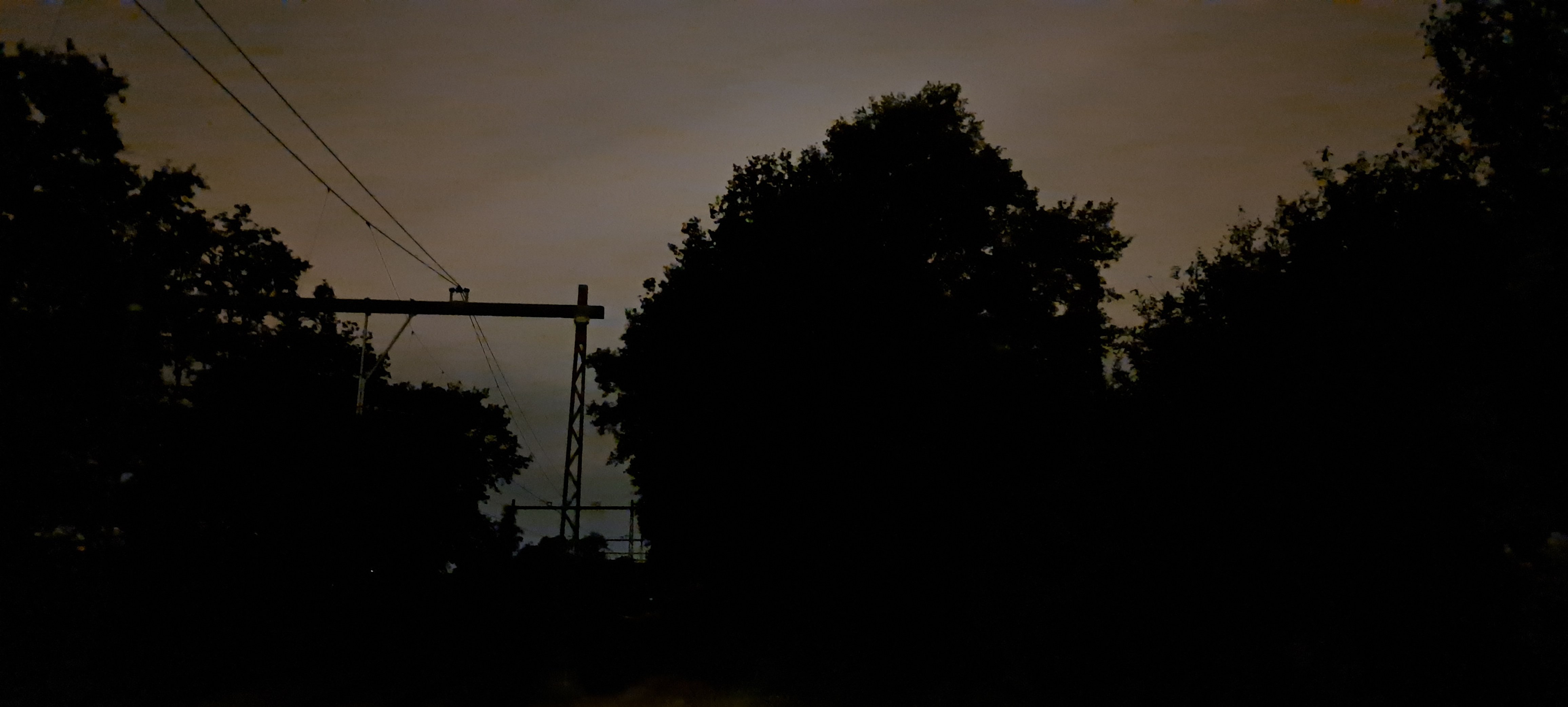 Direct na Vianen volgt de gevreesde donkere nacht. Maar waar zowel in het oosten als in het westen silhouetten bomen tegen de grijze hemel afsteken, laten de lichtjes van de Fietsersbond het geen moment afweten. Ze branden de hele nacht voor die enkele passerende fietser.