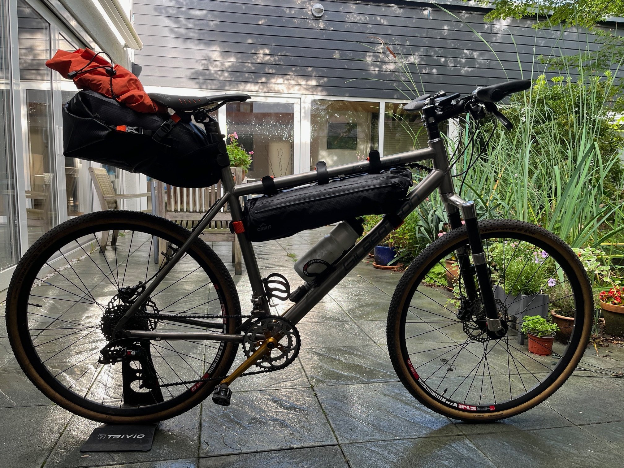 Omdat een frametas op allerlei fietsen van pas kan komen, heb ik die later ook gekocht. De rits zal niet zolang meegaan als die van Apidura, verwacht ik, maar dat hoeft ook niet.
