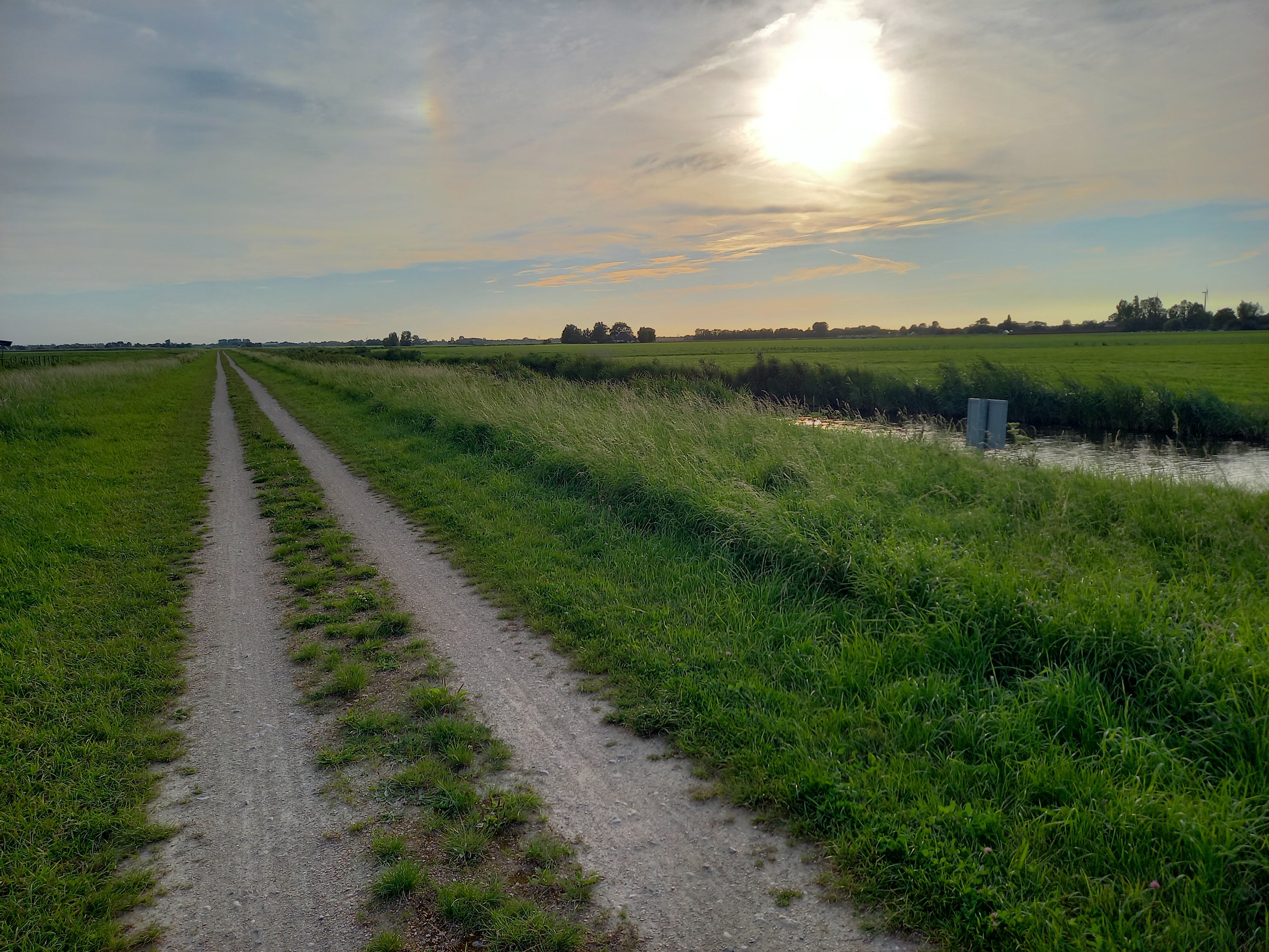 Links een jaagpad en rechts een verkeersweg. Dacht ik aan de Drentse Hoofdvaart. Maar die is iets breder en het landschap rechts is wel erg laag.... dat is 'em niet.