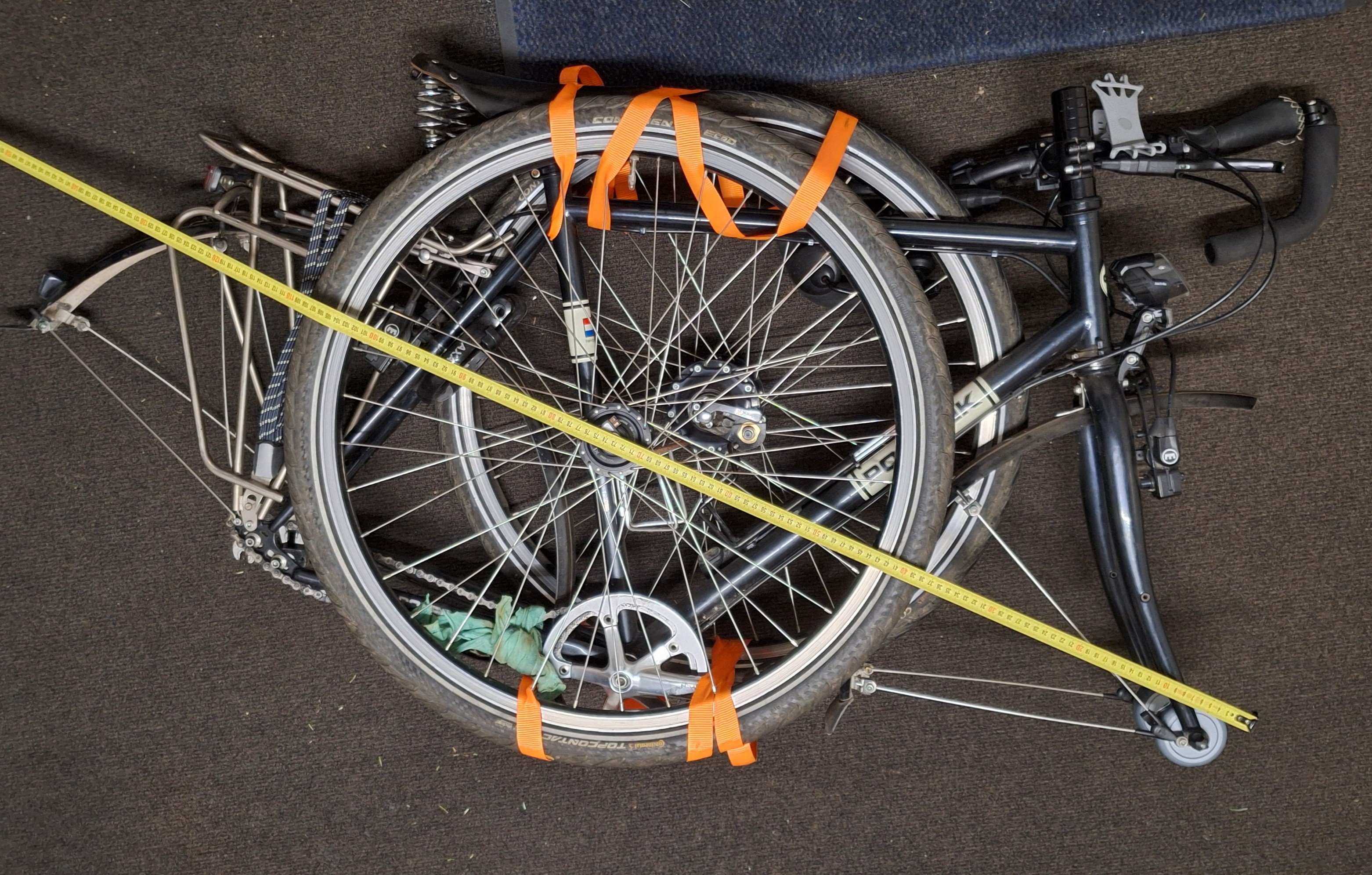 De fiets in samengebonden toestand.