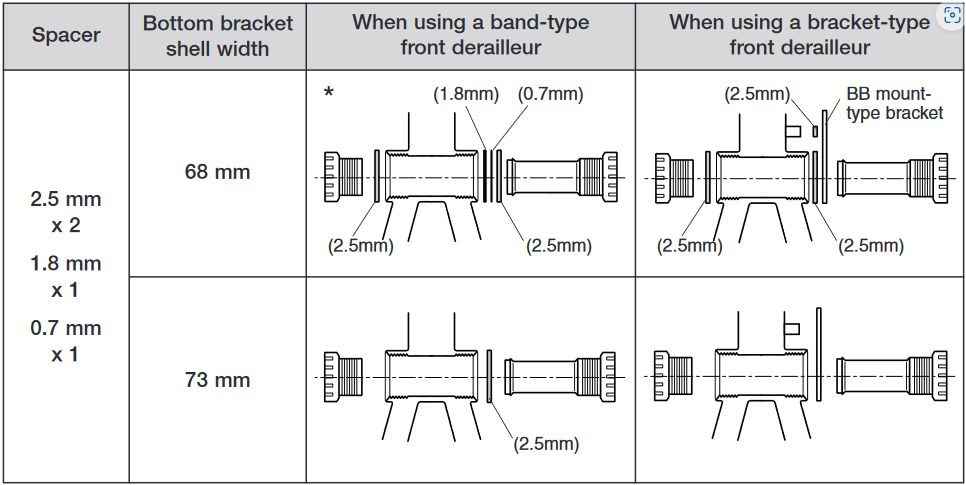 Inderdaad. Als je frame een 68mm bracketpot heeft moet je 3 spacers van ieder 2,5mm monteren.