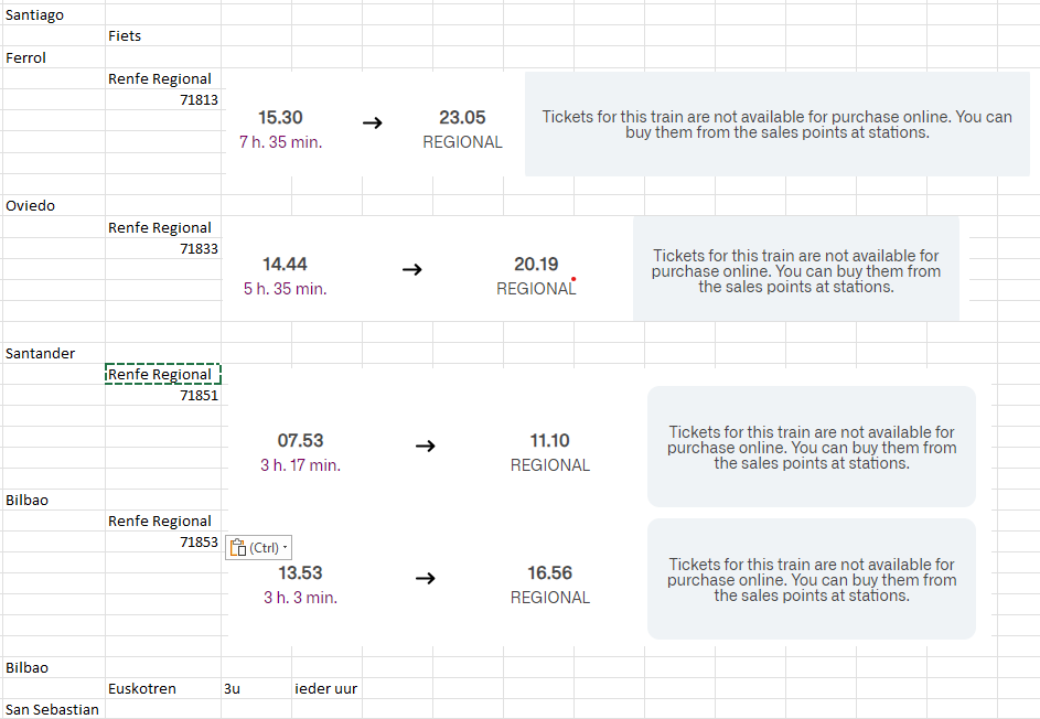Mijn puzzelwerk deed ik aan de hand van de on-line dienstregelingen van Renfe in 2024. Je zou moeten controleren of die in 2025 nog hetzelfde zijn.