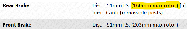 Mocht je een 180mm schijf willen monteren aan de achterkant, dan gaat dat buiten de specs van Surly: Ik liep tegen een vergelijkbaar punt op bij de voorrem van mijn Cotic Escapade: daar mag van de fabrikant maximaal 160mm op. Een grotere schijf monteren betekent automatisch einde van de fabrieksgarantie.