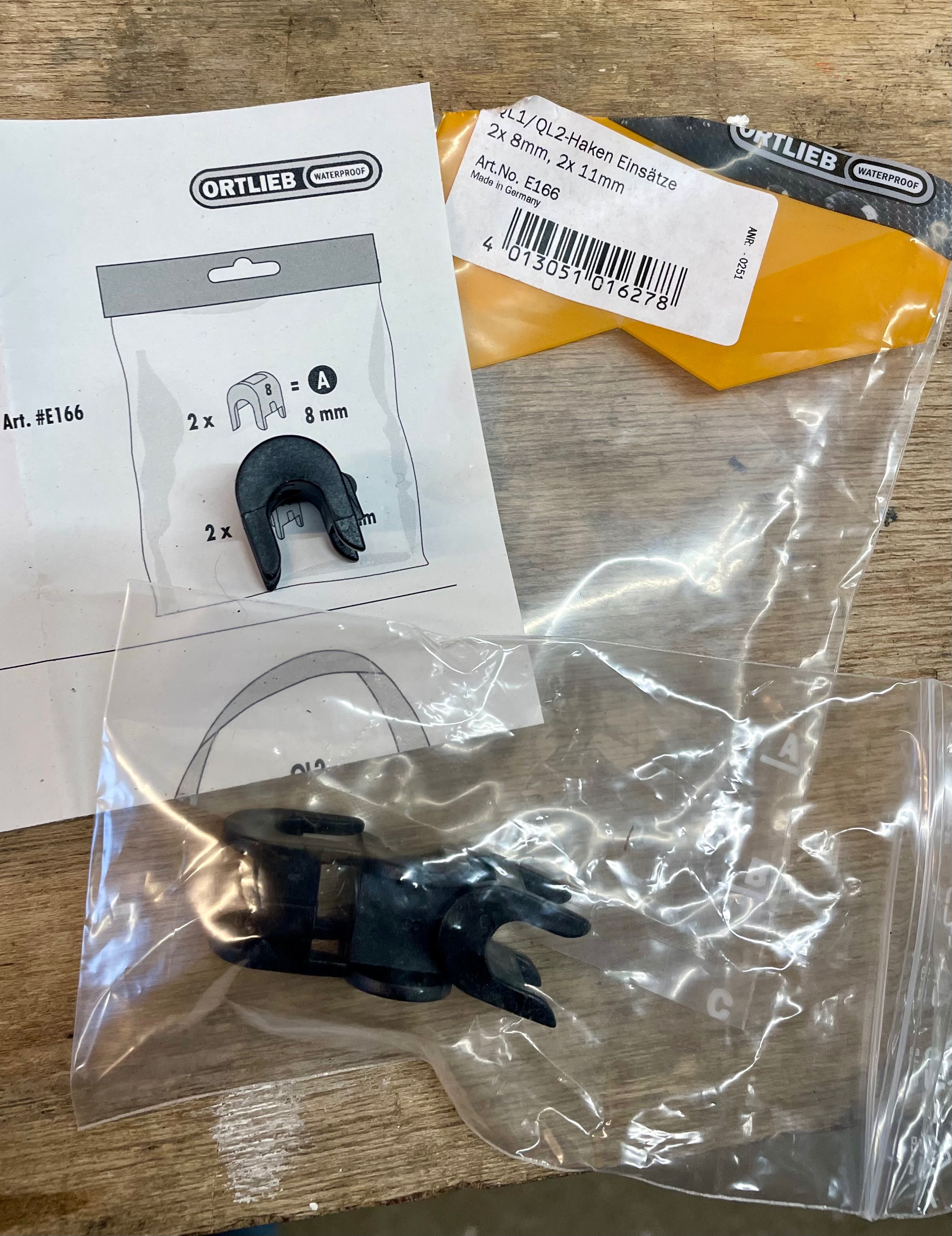 Ik had Ortlieb tashaken 11 mm nodig en dan krijg je ook tashaken van 8mm bij, waar ik niets aan heb. Dus ik heb 4 haken over.