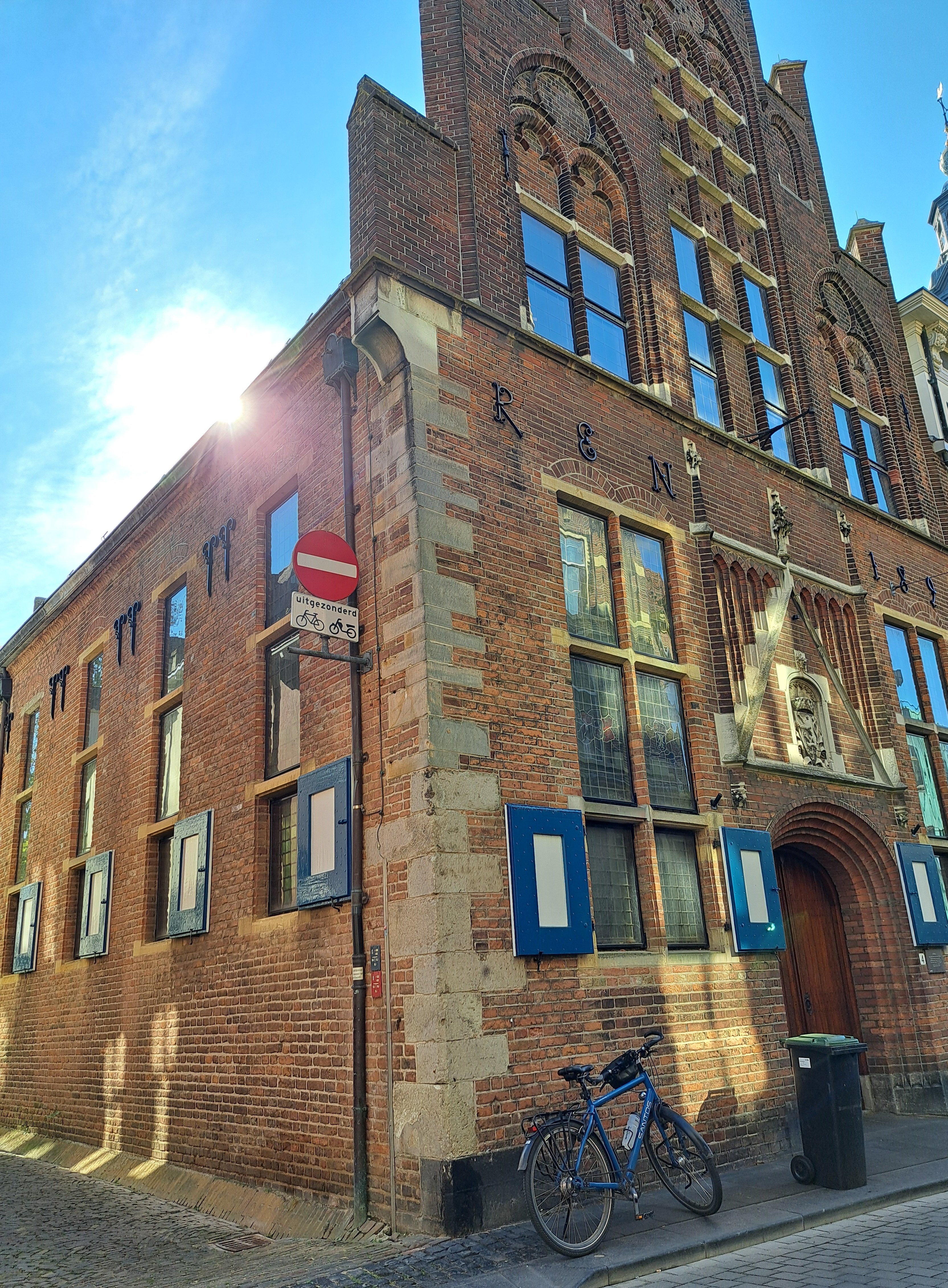 Aan de gelige kleur van de bakstenen (IJsselsteentjes?) ruik ik Zuid-Holland. Met allerlei zoektermen gezocht, Schiedam, Vlaardingen, Dordrecht en zo meer. Maar noppes. En dan die merkwaardige toren links. Geen kerk. Ook geen slangentoren van de brandweer, daar is het gebouw te kantoor-achtig voor.