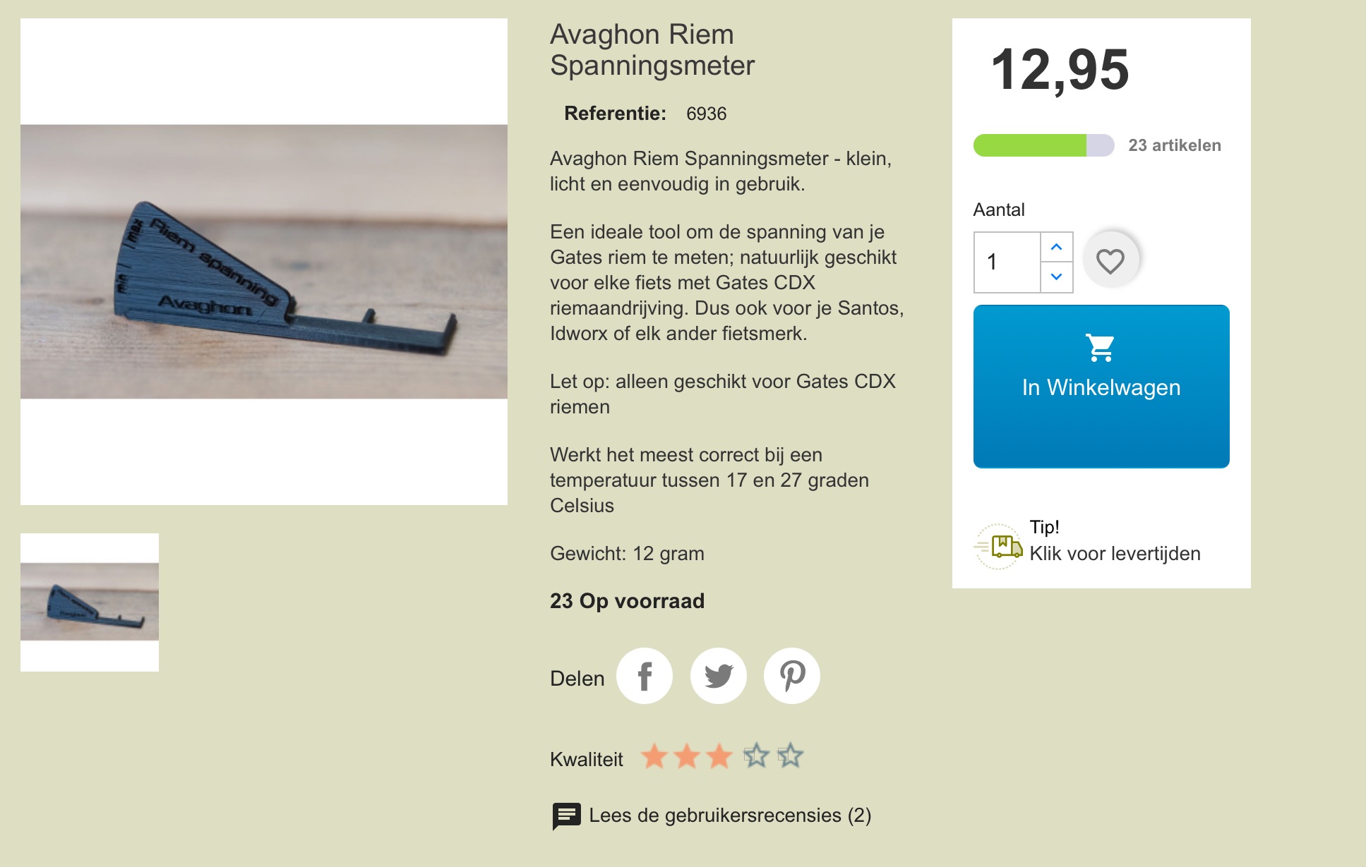 Behalve het handige bewaarblik heeft Bike4Travel ook een handige riem-spanningsmeter ontwikkeld. De Avaghon Riem Spanningsmeter https://www.bike4travel.nl/gereedschap/ ... meter.html