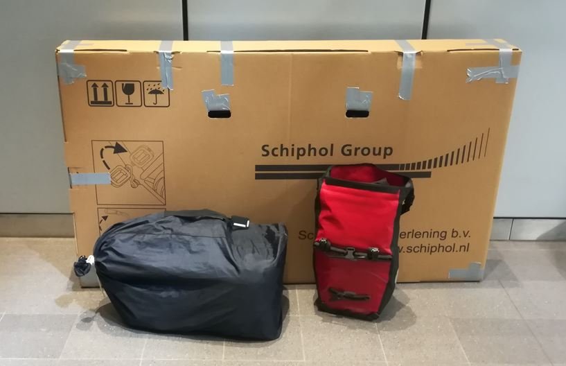 Als je je fiets in het vliegtuig laat vervoeren, waar laat je dan je fietstassen? Ik stel me zo voor dat ik de stuurtas en een fietstas als handbagage meeneem in het vliegtuig, maar dan hou ik nog drie tassen over. Los als ruimbagage? Of alledrie die tassen in een aparte tas stoppen?