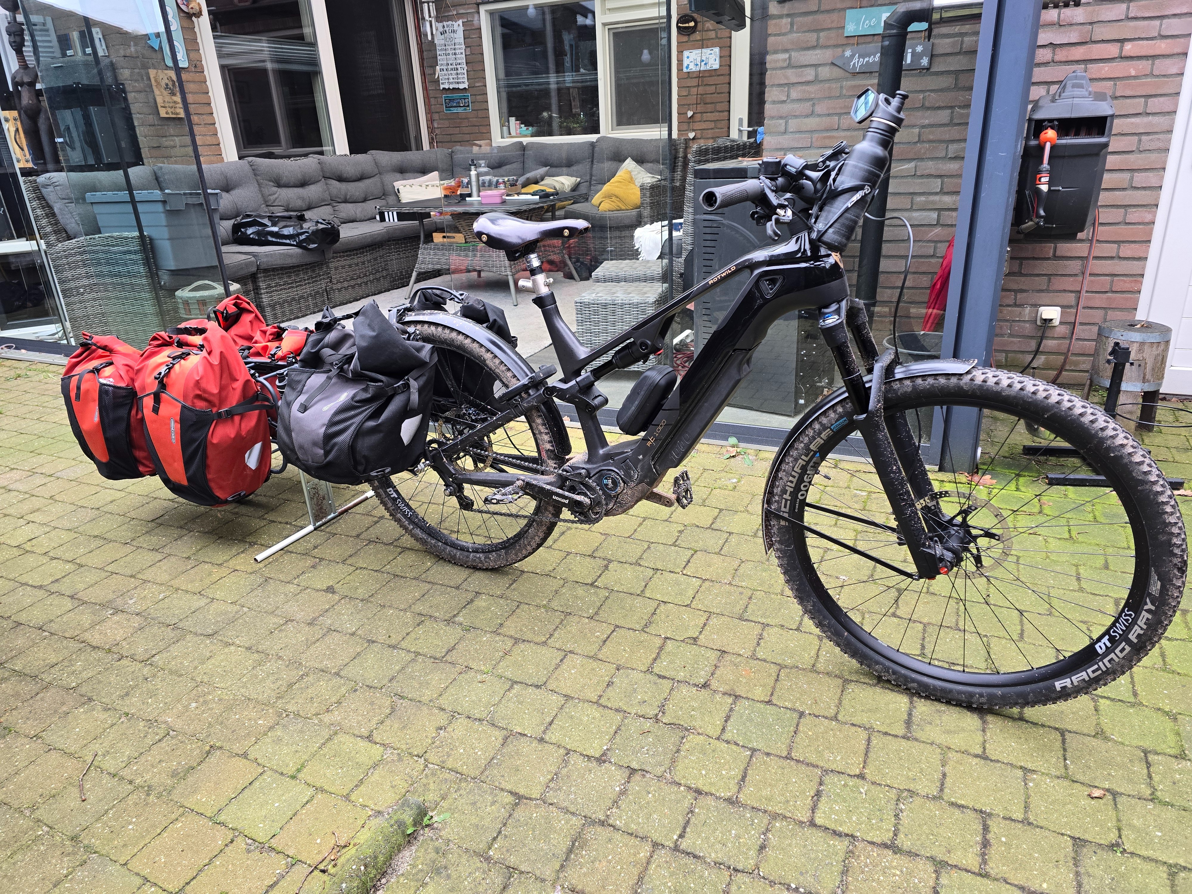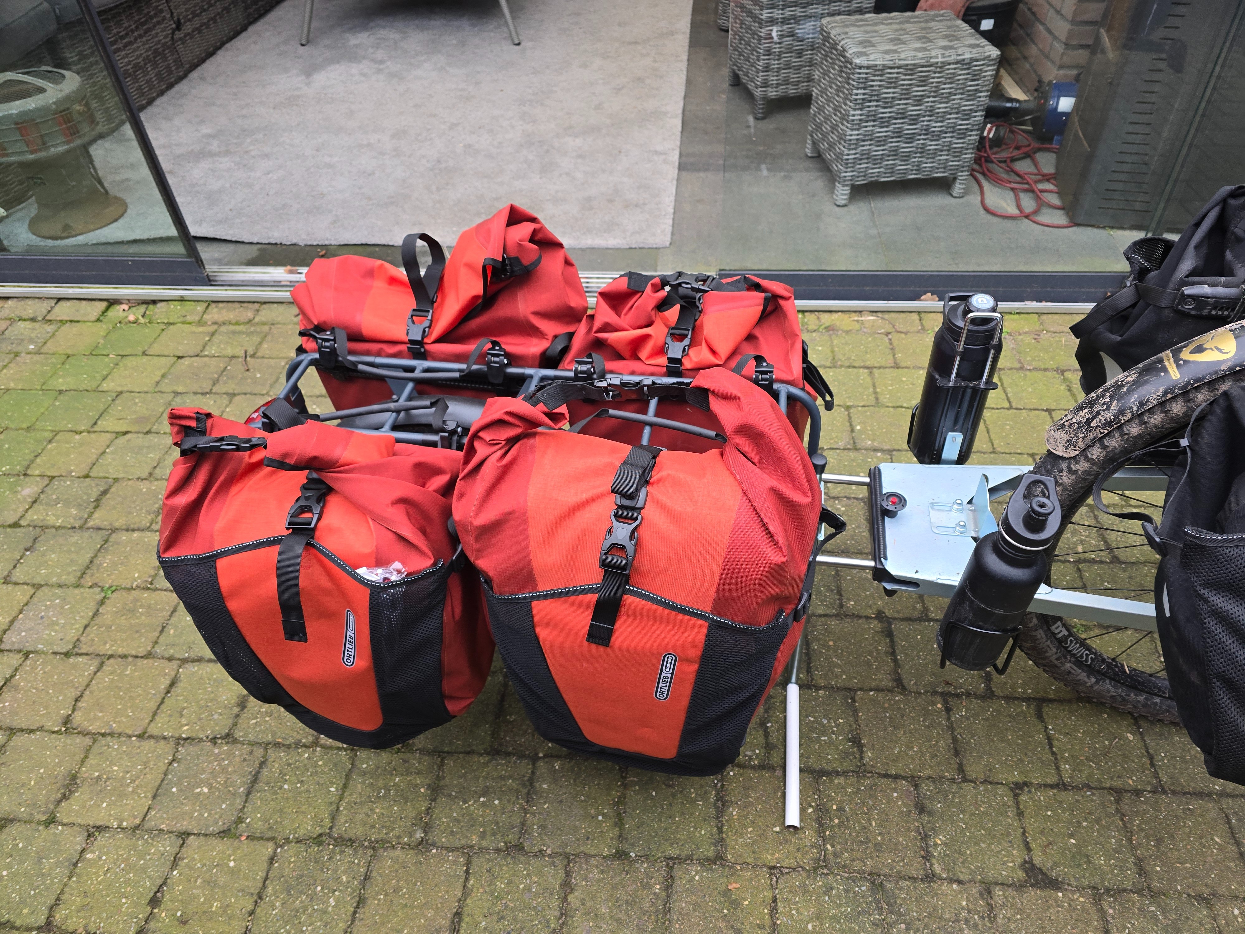 Ook omdat ik het idee heb, dat er met vier zijtassen en een tas erbovenop nogal wat meer gewicht aan spullen meegenomen kan/zal worden?
