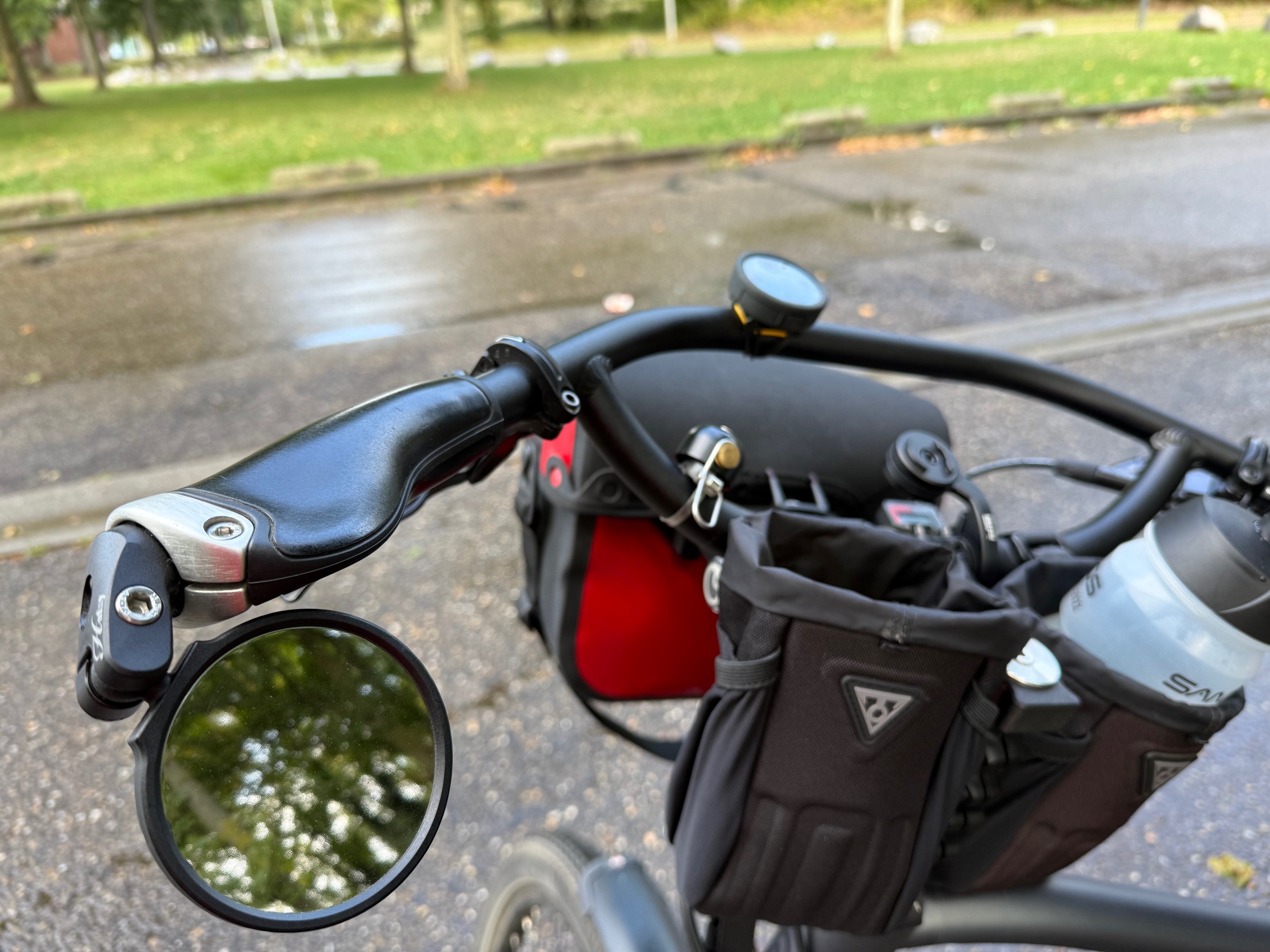 De ervaring met mijn huidige spiegel op het stuur is dat deze vrij breed naar de zijkant geplaatst moet worden om langs mijn armen te komen om wat te zien.