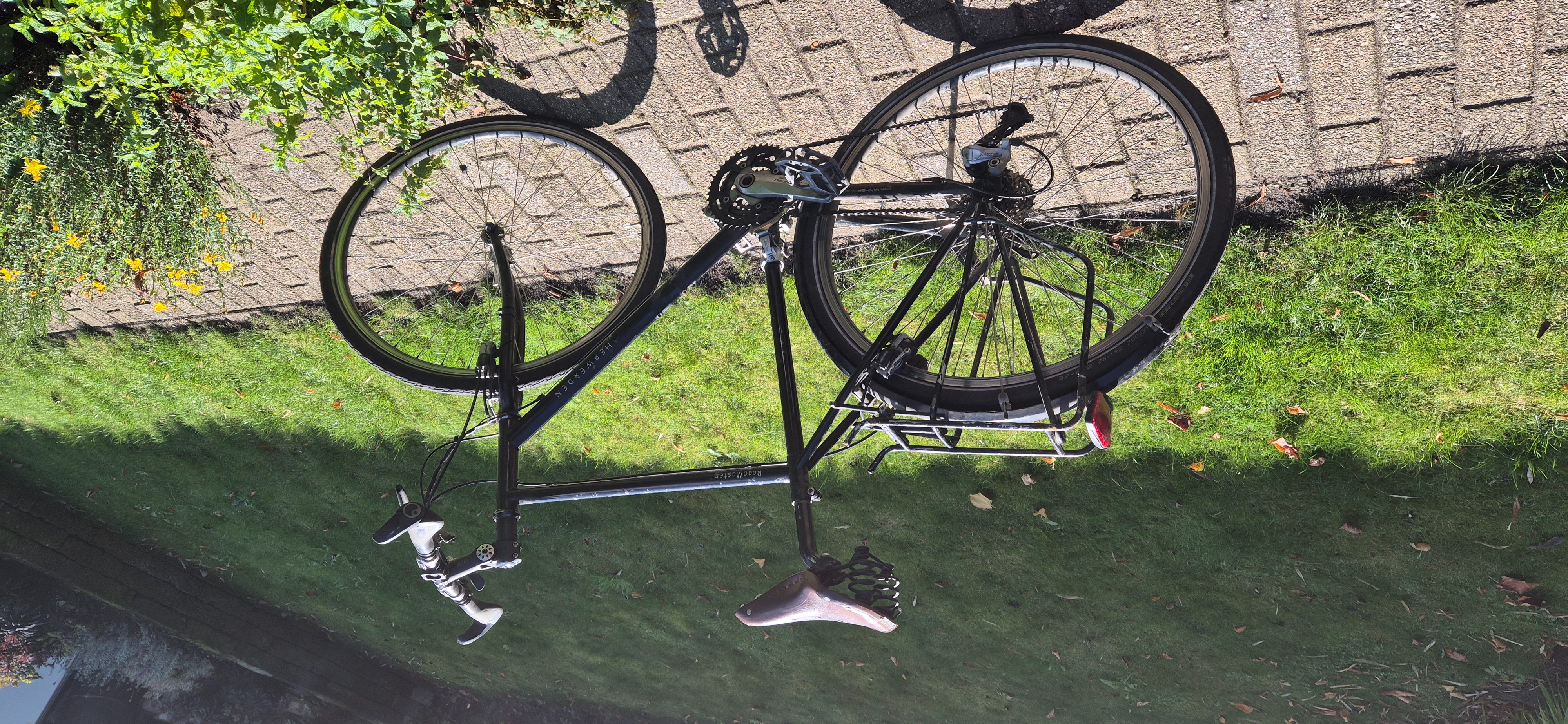 Deze vakantiefiets heeft al veel landen in de wereld gezien. Het is een stevige robuuste fiets met Magura HS33 remmen, 28 inch wielen, Schwalbe banden, crank shimano deore lx, schakelsysteem is XT, Tubus drager achter., Brooks zadel en Welgo pedalen.