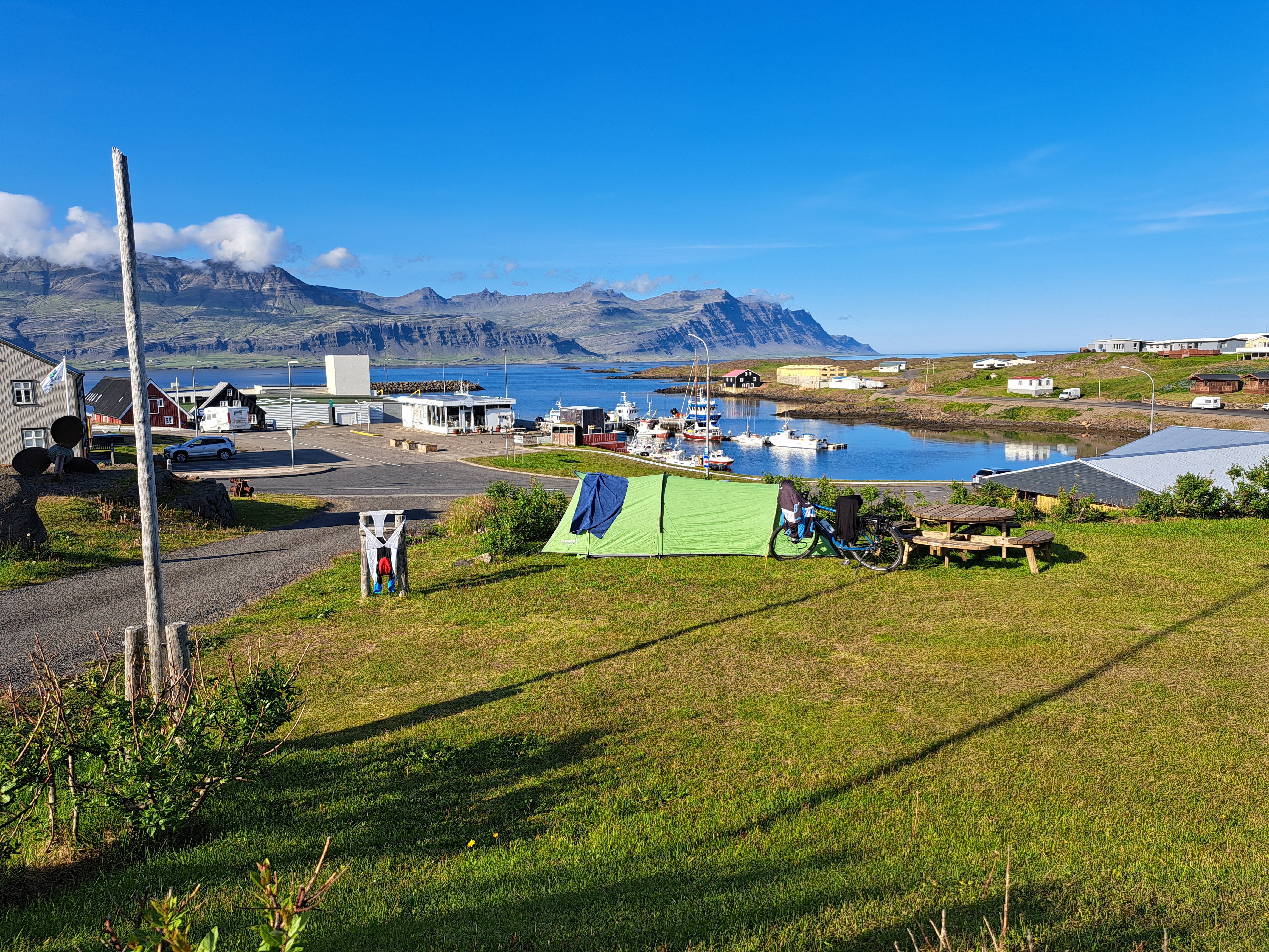 Op Google satelliet ingetypt met "East Iceland campings" en goed gekeken naar de kustvormen en de zonnestand (is middag), gevonden: Djúpivogur camping.