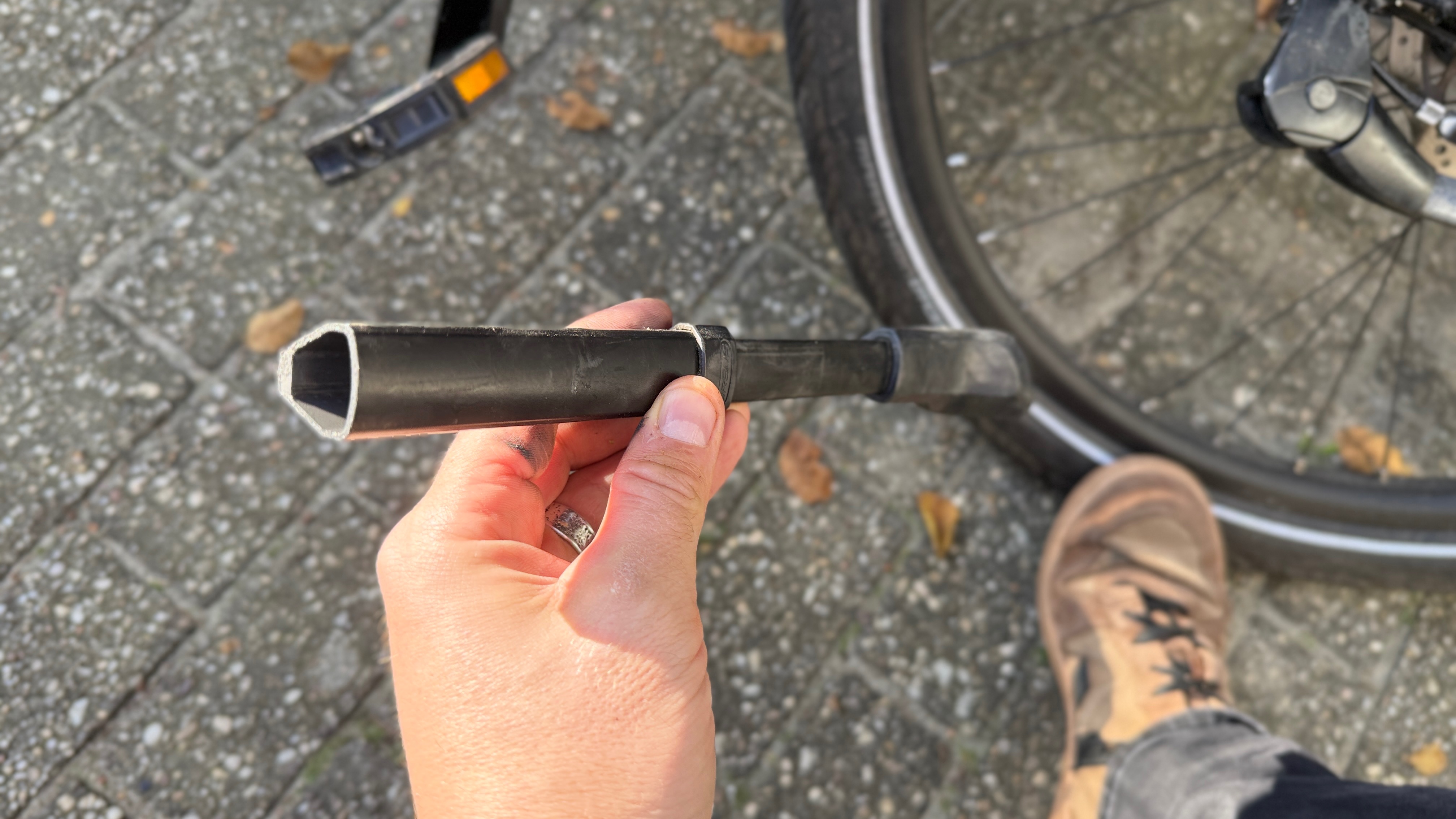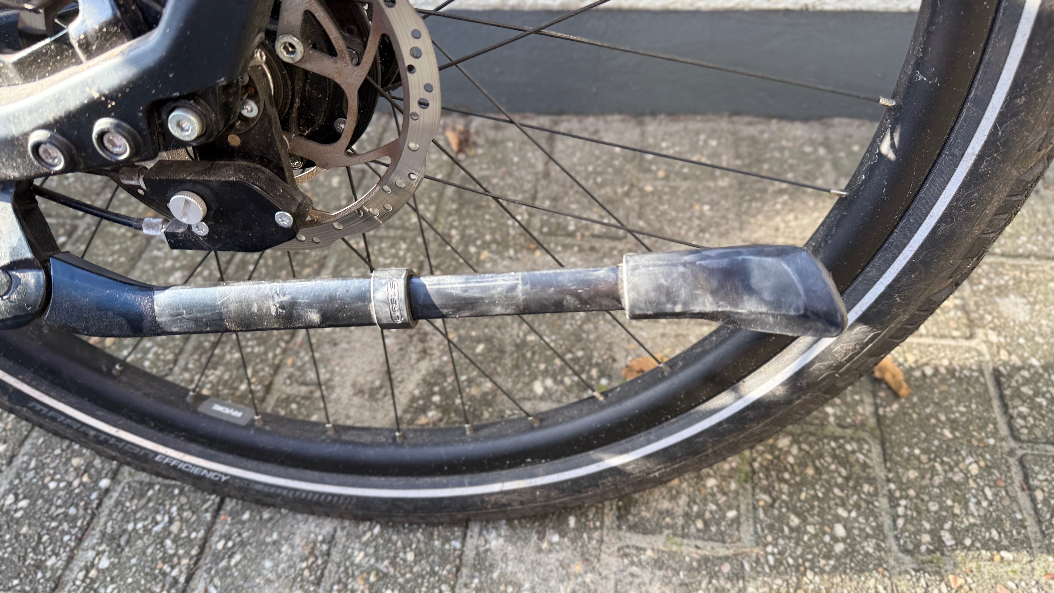 Tijdens het fietsen vandaag verloor ik, op een kasseiweg, plots (een deel van) mijn standaard.