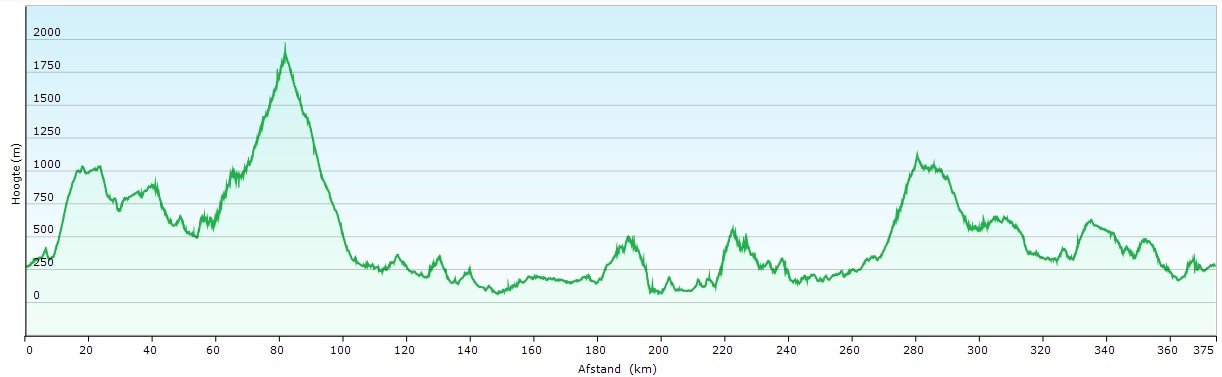 370 a 400 km lengte (400 als je op de top van de Mont Ventoux wil staan)