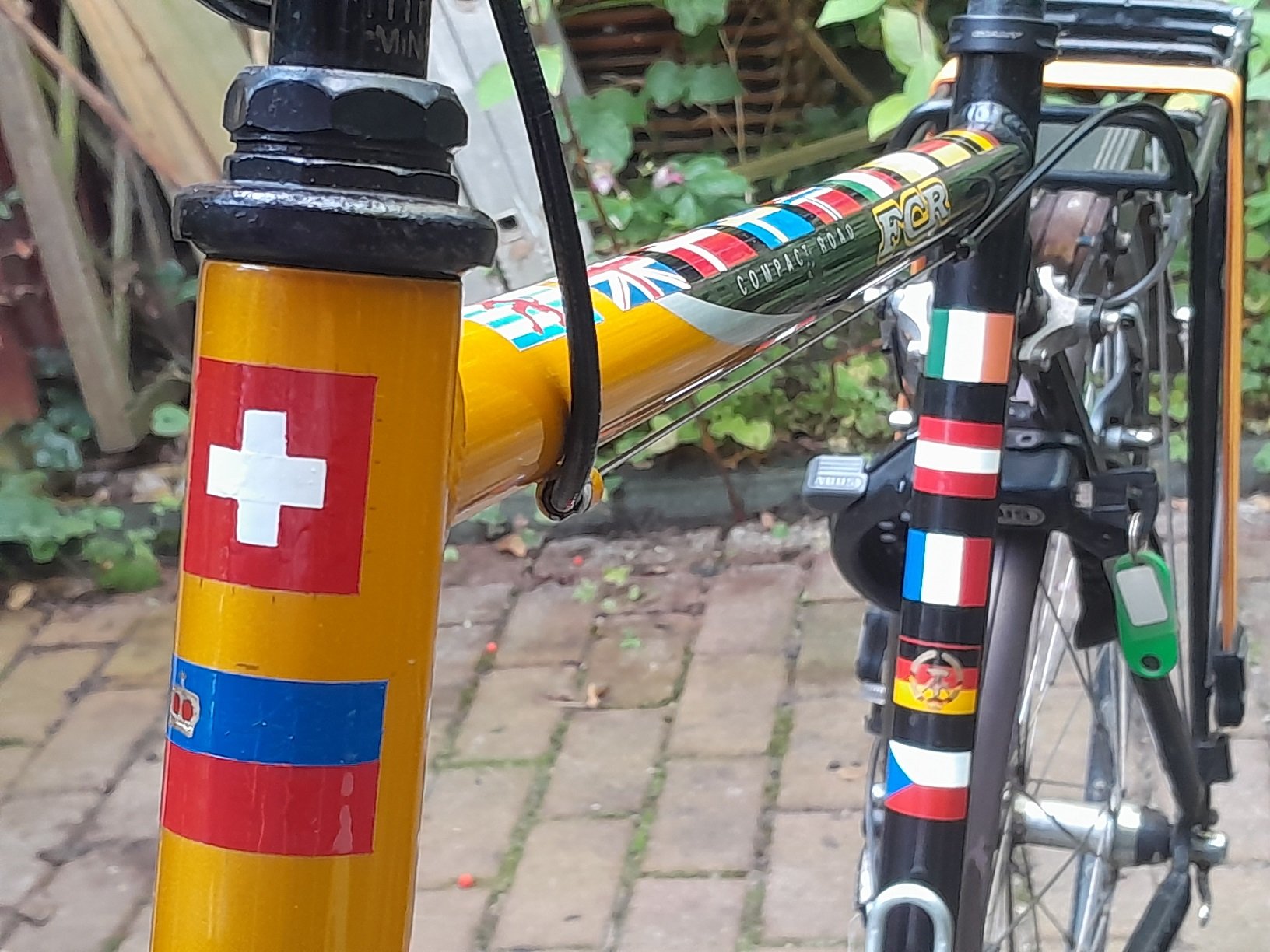 Wegens ruimtegebrek nu vooraan op de stuurbuis. Bij elkaar opgeteld al 16 landen! 8)