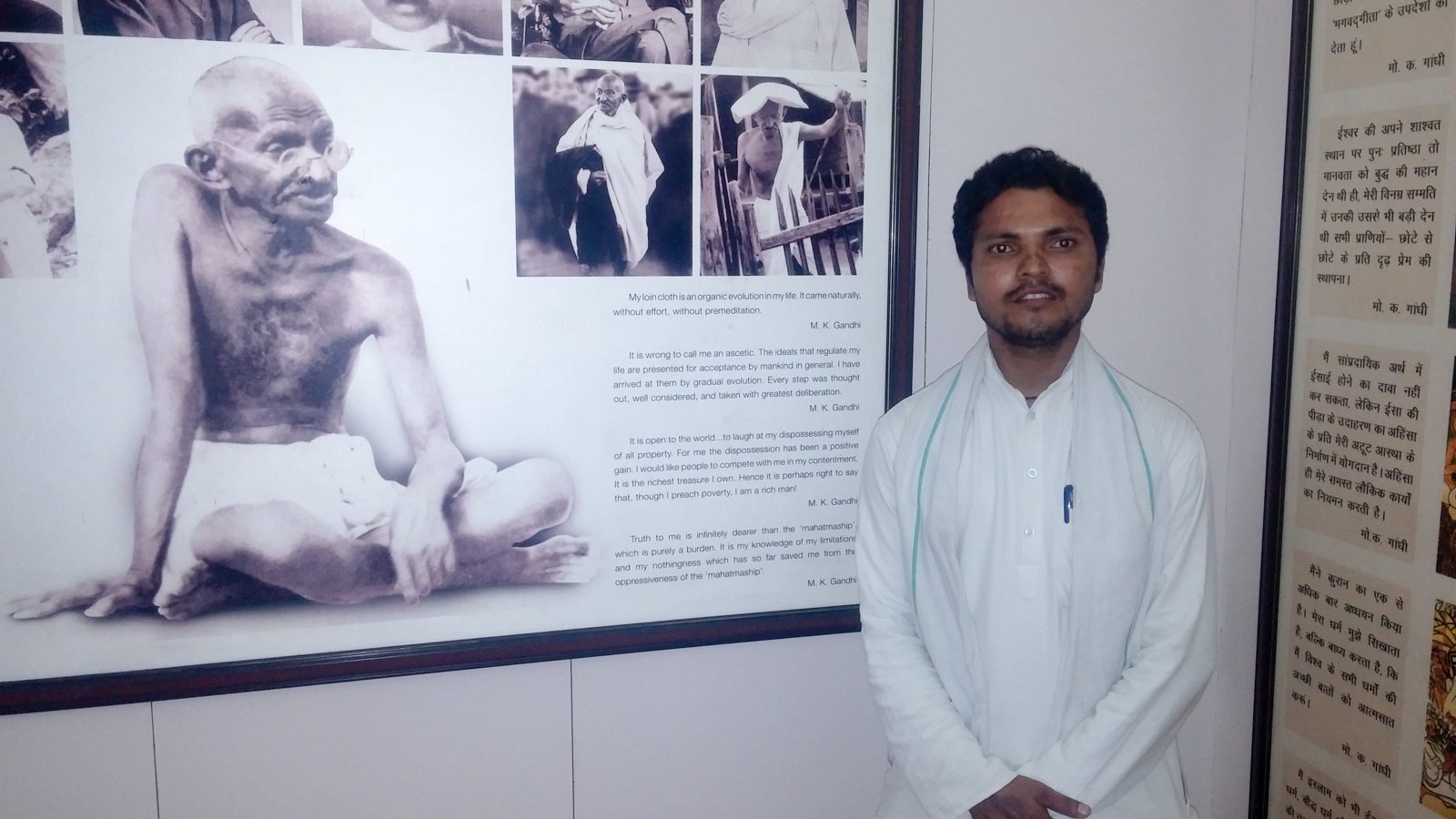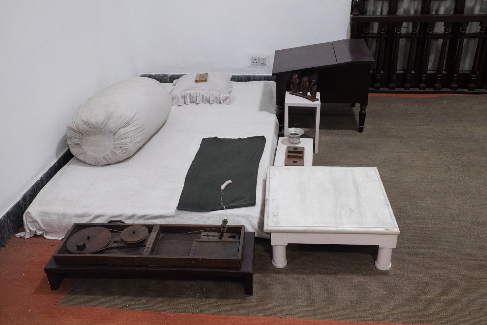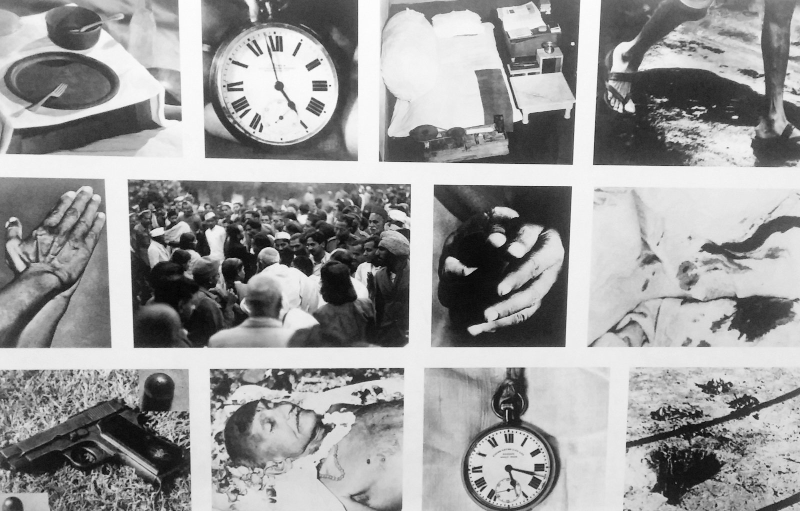 Hieronder nog enkele foto's van de aardige gids, de eenvoudige slaapplek van Ghandi en een collage van wat er die tragische dag gebeurde: