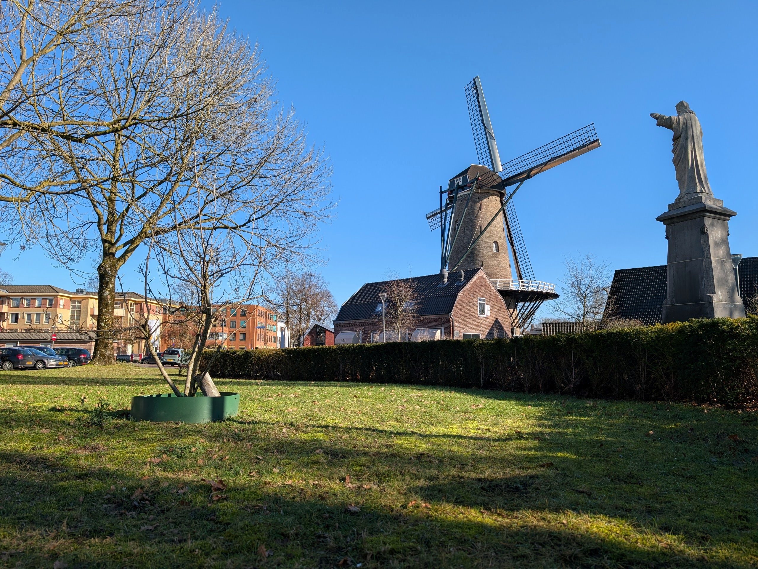 Op de Streetview van 2025 is de boomsculptuur verdwenen, evenals de lantaarnpaal. De sculptuur zegt wel iets over de vroegere functie van het gebouw.